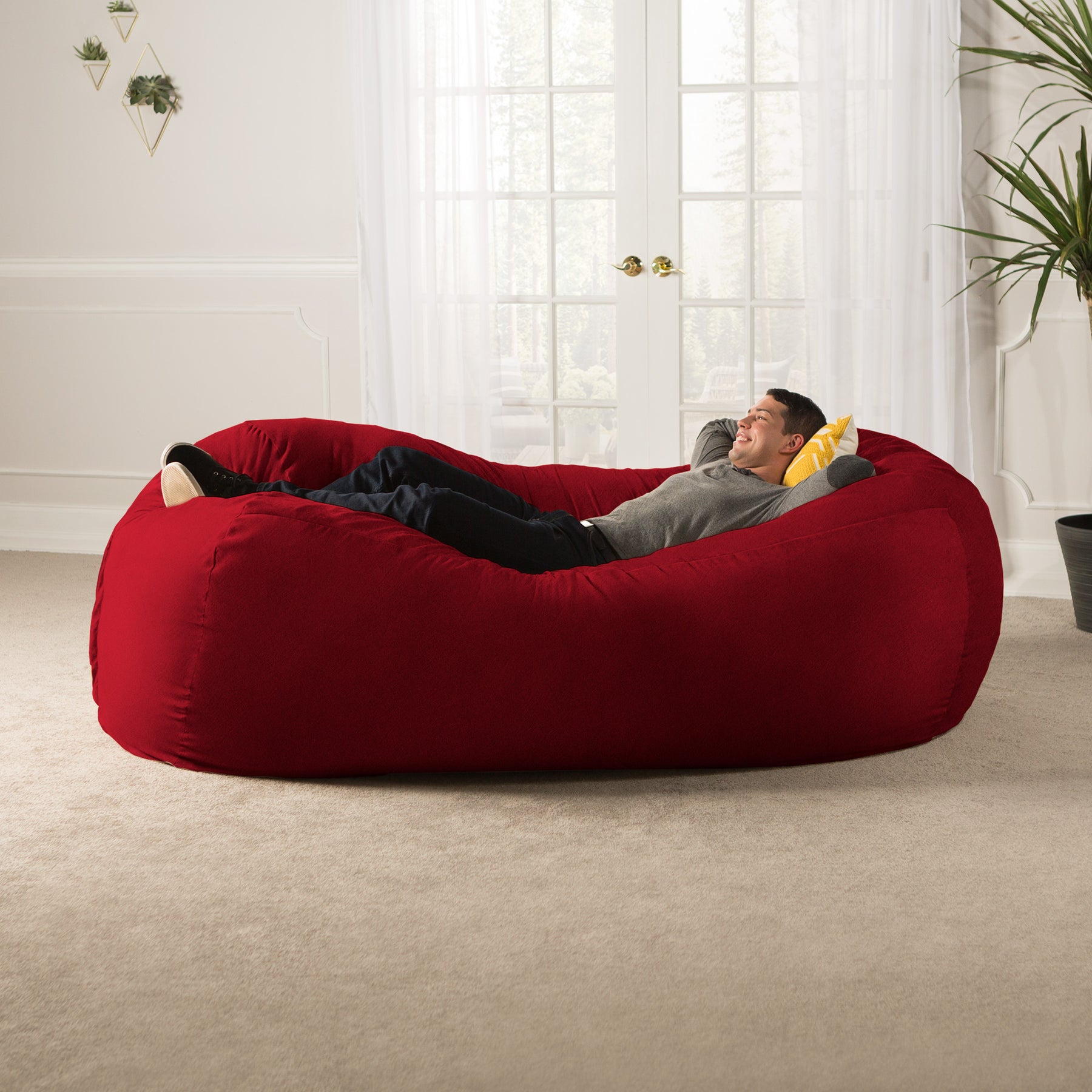 • 7 ft. multi-functional bean bag sofa for up to three adults Filled with finely shredded polyurethane foam that provides the perfect amount of support while remaining soft and comfortable.