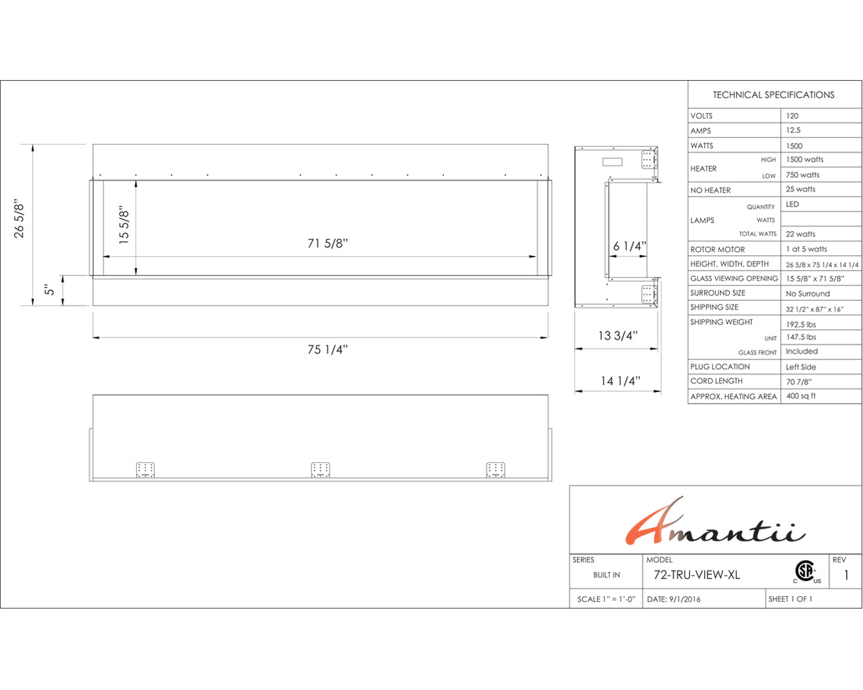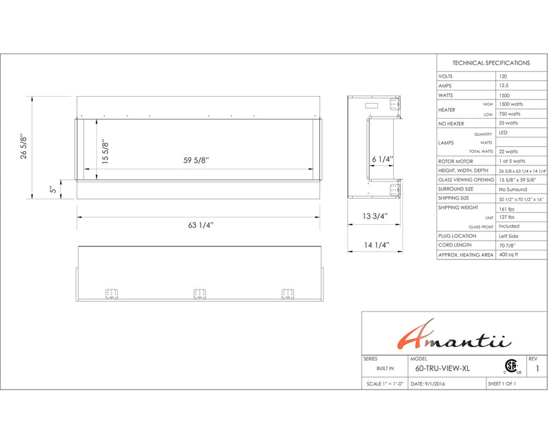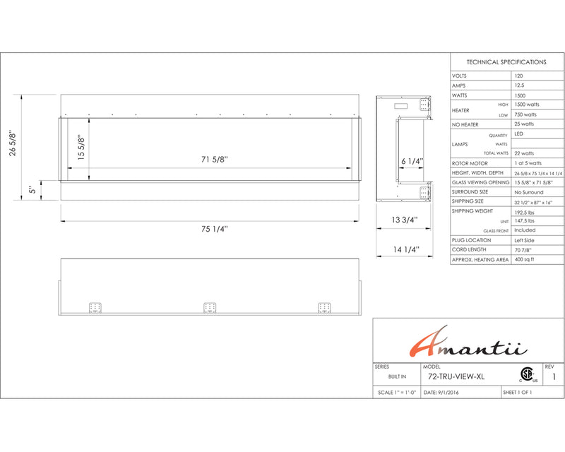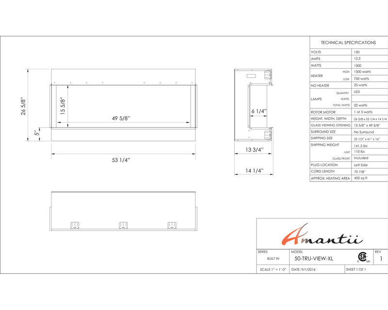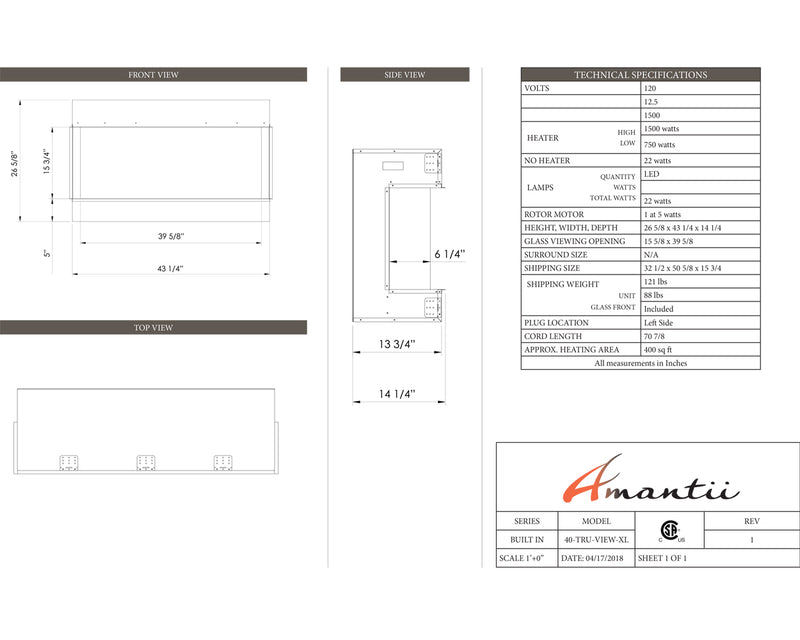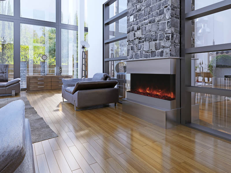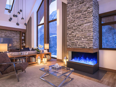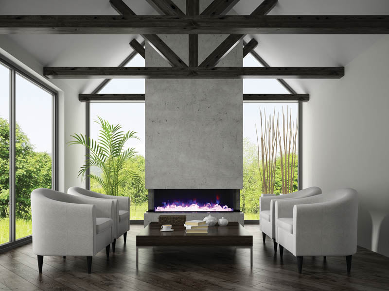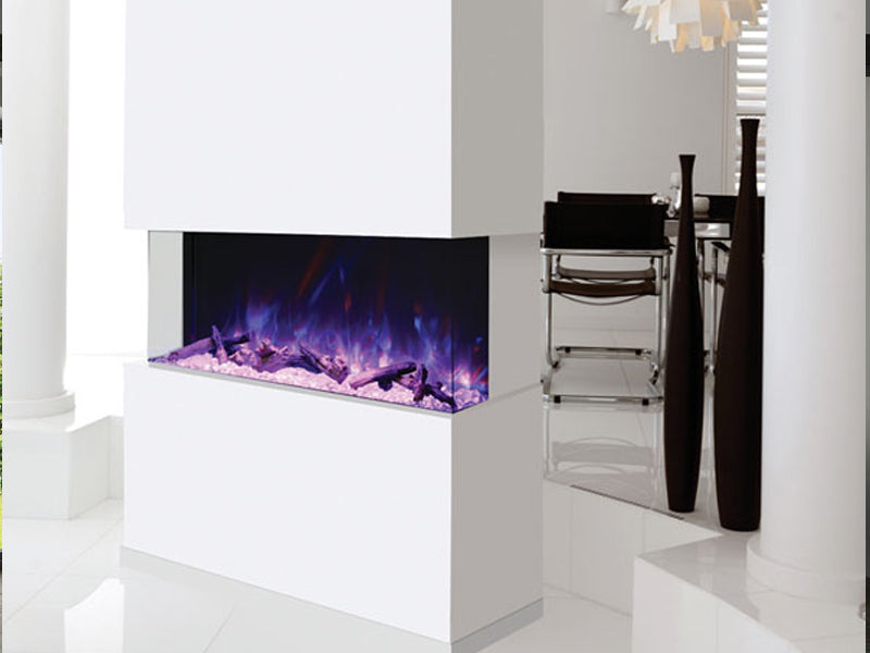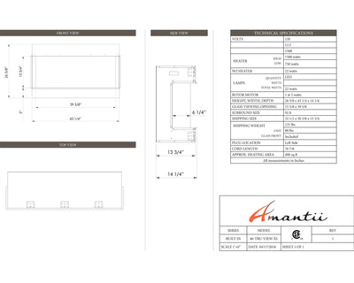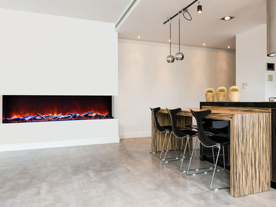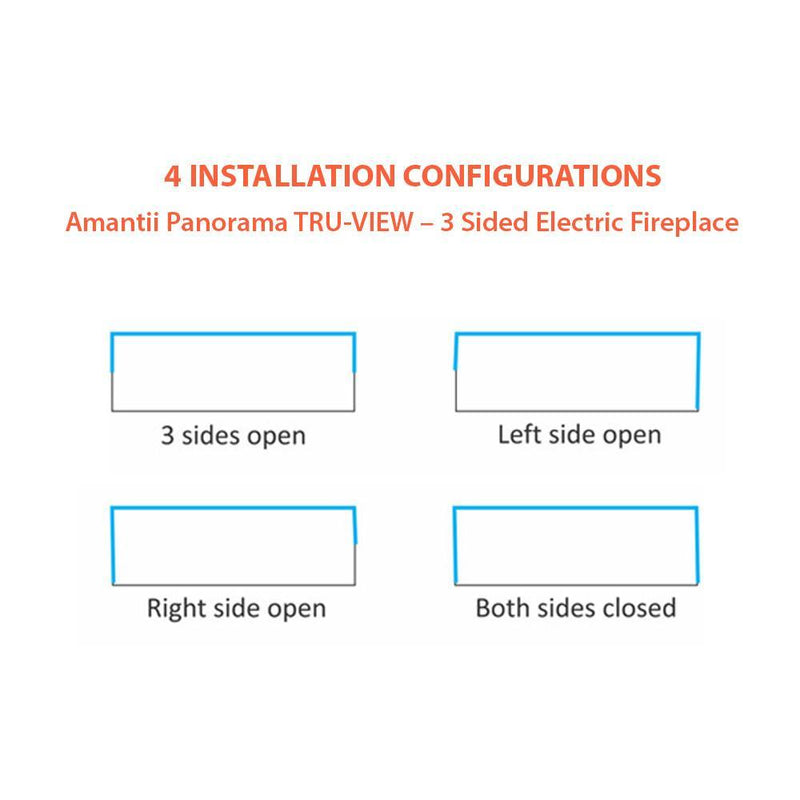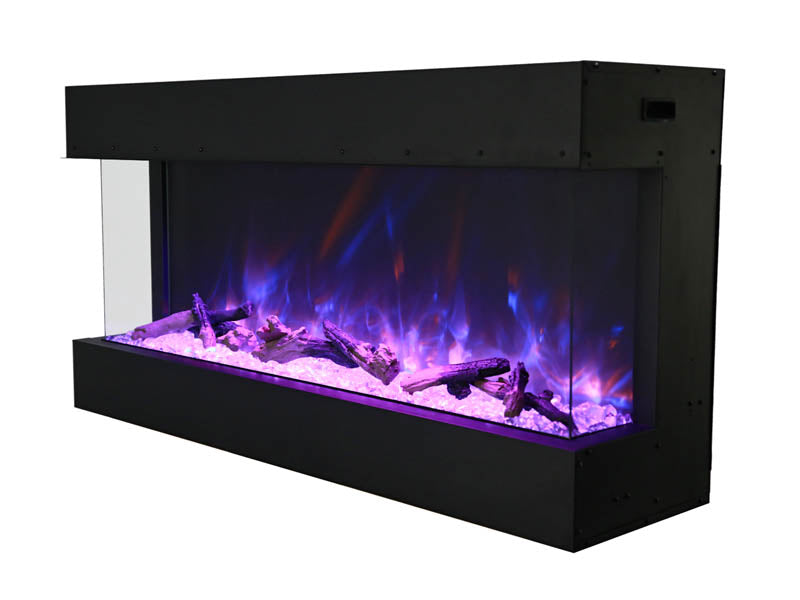 Ignite every sense with the Amantii Tru View XL Deep Smart Electric Fireplace masterpiece, available in 4 sizes to fit your vision. This beauty isn't just a fireplace, it's a portal to modern-day fire magic. Control the flames (three speeds, three color combos!) and adjust the heat (up to 5,000 BTU, with 240V options for larger models) from your smartphone, touch pad, or remote. No unsightly vents mar the view, just pure fire elegance. Program the timer and thermostat to welcome you with warmth or adapt to the weather. Choose from 10 canopy and ember bed lighting colors to set the mood, with a cycling option for extra ambiance. Two flame patterns (standard and traditional) let you personalize the atmosphere. This versatile masterpiece can be installed three-sided, two-sided, or front-facing, turning heads in sizes from 40" to 72". Designed for a seamless, edge-to-edge finish, the Tru-View is an invitation to build your dream fireplace experience. So, embrace the future of fire with the Amantii Tru View XL Deep Smart Electric Fireplace and spark something extraordinary.