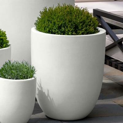 Campania's Fiberglass, known as Lite®, is a composite material containing unsaturated polyester resin, sand, stone powder, talc powder, and fiberglass. Our Lite® planters meet commercial standards and often feature internal ribbing for added strength and durability. These planters are suitable for both indoor and outdoor use, commonly used in rooftop gardens, terraces, hospitality projects, public spaces, and restaurants. They're an excellent choice when lightweight materials are required for large-scale plantings. Fiberglass planters are easy to ship and handle, resistant to UV exposure and extreme temperatures, and won't corrode from contact with soil, eliminating the need for plastic liners.