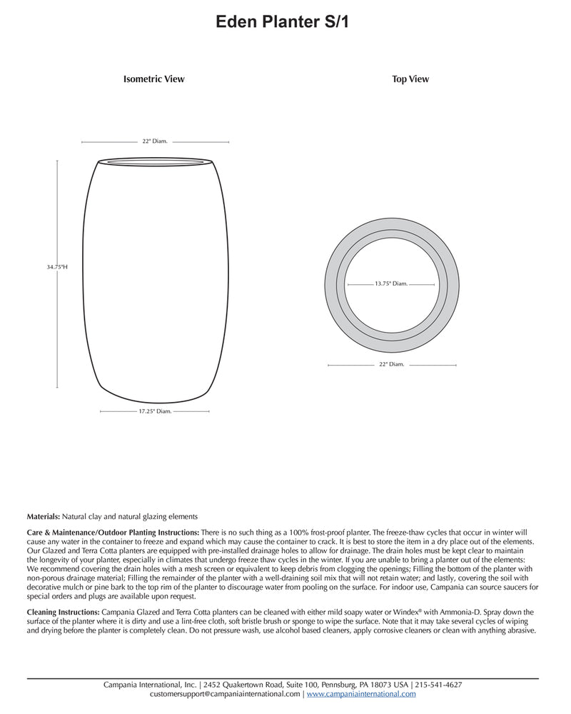 Campania’s glazed and terra cotta planters are hand made from natural clay using traditional artisanal techniques and high-fired at temperatures between 990-1000 degrees centigrade to ensure frost resistance and durability. Glazed planters are coated with natural glazing elements that are baked onto the surface to enhance the products resistance to weathering.