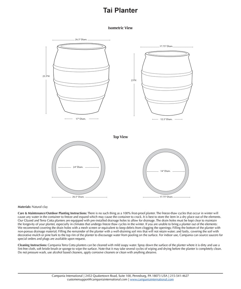 Campania’s glazed and terra cotta planters are hand made from natural clay using traditional artisanal techniques and high-fired at temperatures between 990-1000 degrees centigrade to ensure frost resistance and durability.
