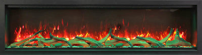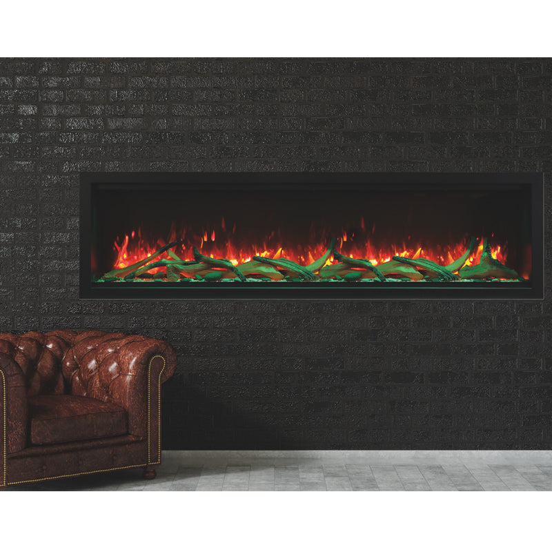 Command the grand stage of fire with the Amantii 74" Symmetry Extra Tall Smart Electric Fireplace (20 1/8"H x 74 1/4"W x 11 3/4”D), where beauty and control reign supreme.** This indoor/outdoor marvel boasts an expansive 17 5/8 x 72 3/8″ glass view, free from vents, showcasing lifelike flames that dance in shades of yellow, orange, and red at your whim. Convenience is king: control everything from the intuitive touchpad, with temperature displayed for effortless monitoring. Personalize your haven: choose from two flame patterns, standard or traditional, and illuminate your media with 13 vibrant canopy lighting colors. Warmth surrounds you: enjoy up to 5000 BTU of heat controlled via remote or hard-wired thermostat. This 74" Symmetry Extra Tall isn't just a fireplace, it's a statement piece that ignites endless possibilities, stretching the boundaries of firelight enjoyment, indoors or out.