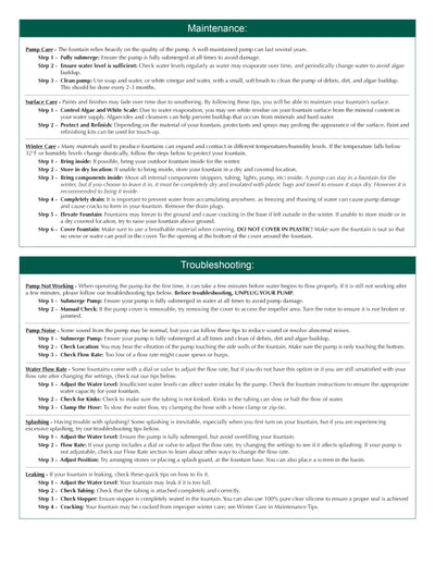 Maintaining your fountain is not difficult. You just need to have the right information to keep your fountain clean and running properly.