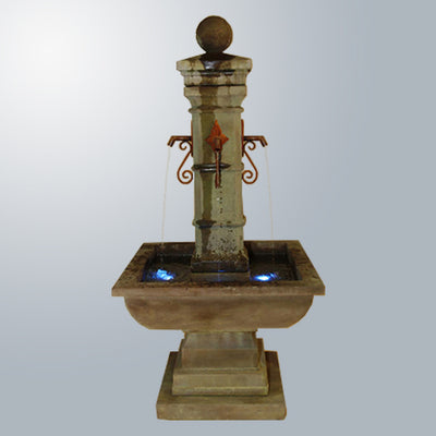 This outdoor fountain is available in 17 Different Finishes. Every finish is hand applied during the production process so color variation is expected. When the finish is applied to the water feature it is designed to replicate the look of naturally aged materials.