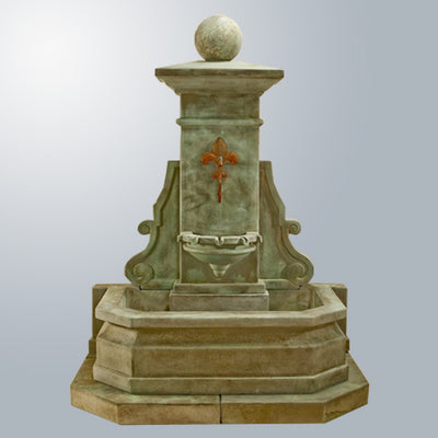 This outdoor fountain is available in 17 Different Finishes. Every finish is hand applied during the production process so color variation is expected. When the finish is applied to the water feature it is designed to replicate the look of naturally aged materials.