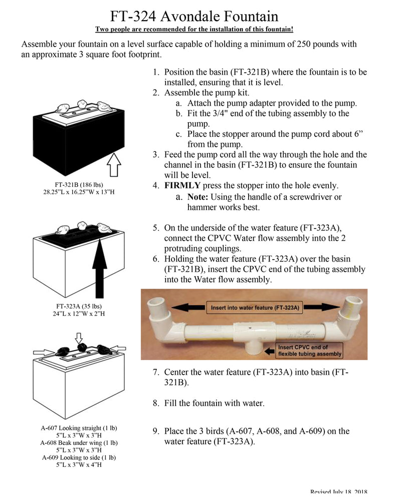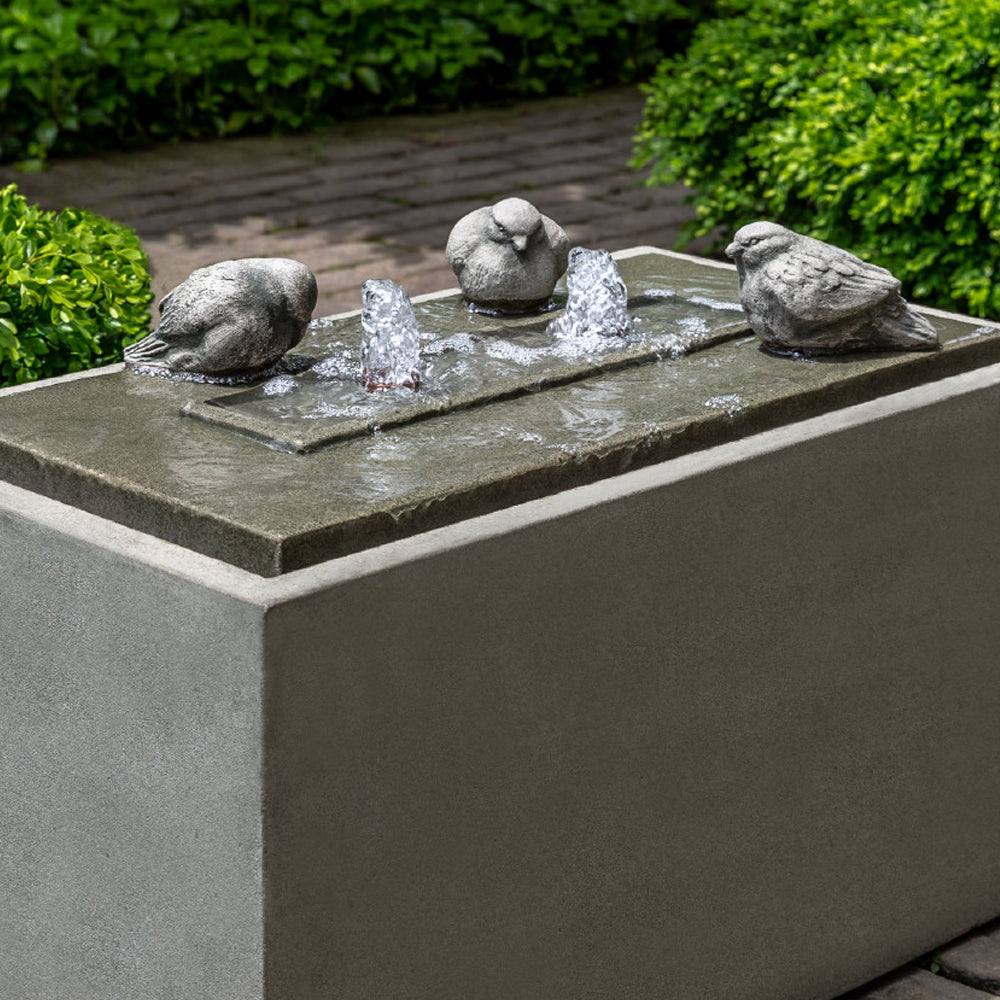 Avondale Fountain is the perfect piece to make your outdoor living space more relaxing and welcoming. It features a rectangle shape with two bubbles of water and three doves on the top. It has a high quality and durability to last for many years. It is available in a wider variety of color choices.