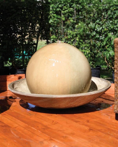 The Ball and Wok Outdoor Fountain permits the streaming, intelligent water to become the dominant focal point as it streams out from the highest point of the circle and into the bowl underneath.