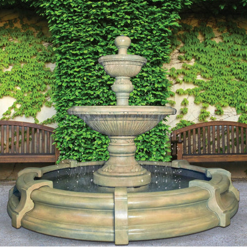 Featuring an elegant design that can be viewed and appreciated from all angles, the Two-Tier Traviata in Toscana Pool will make an excellent focal point for any garden or courtyard. It stands almost six feet tall and is made from durable cast stone.
