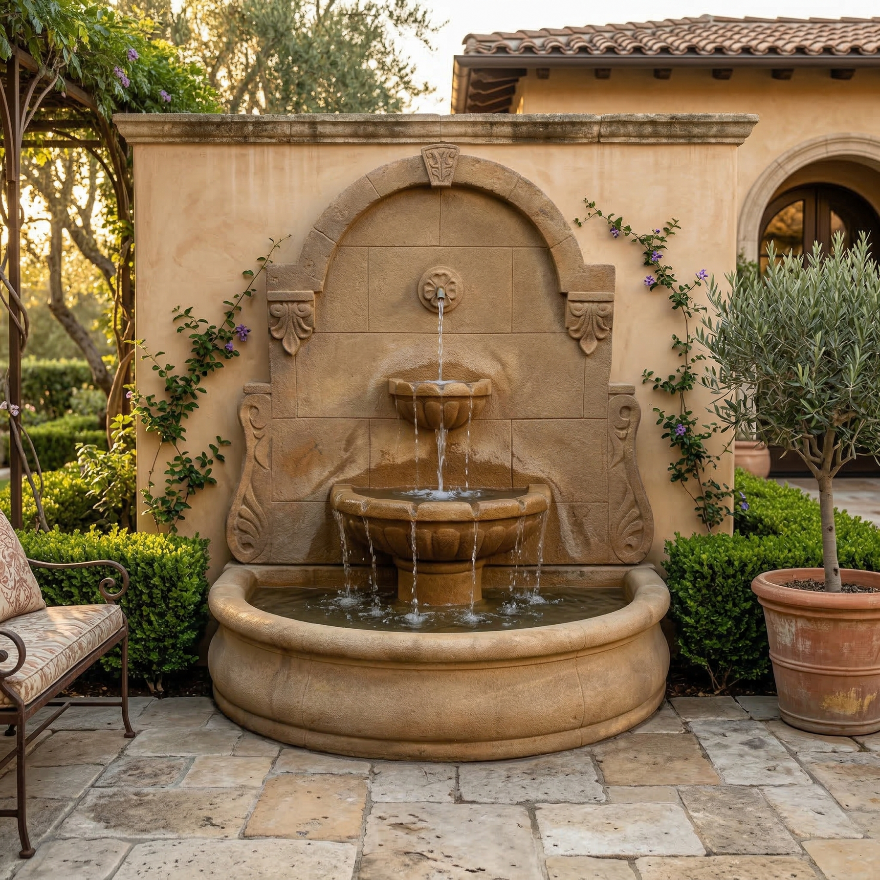 Mediterranean Tiered Outdoor Fountain with Fiore Pond | Large Fountain