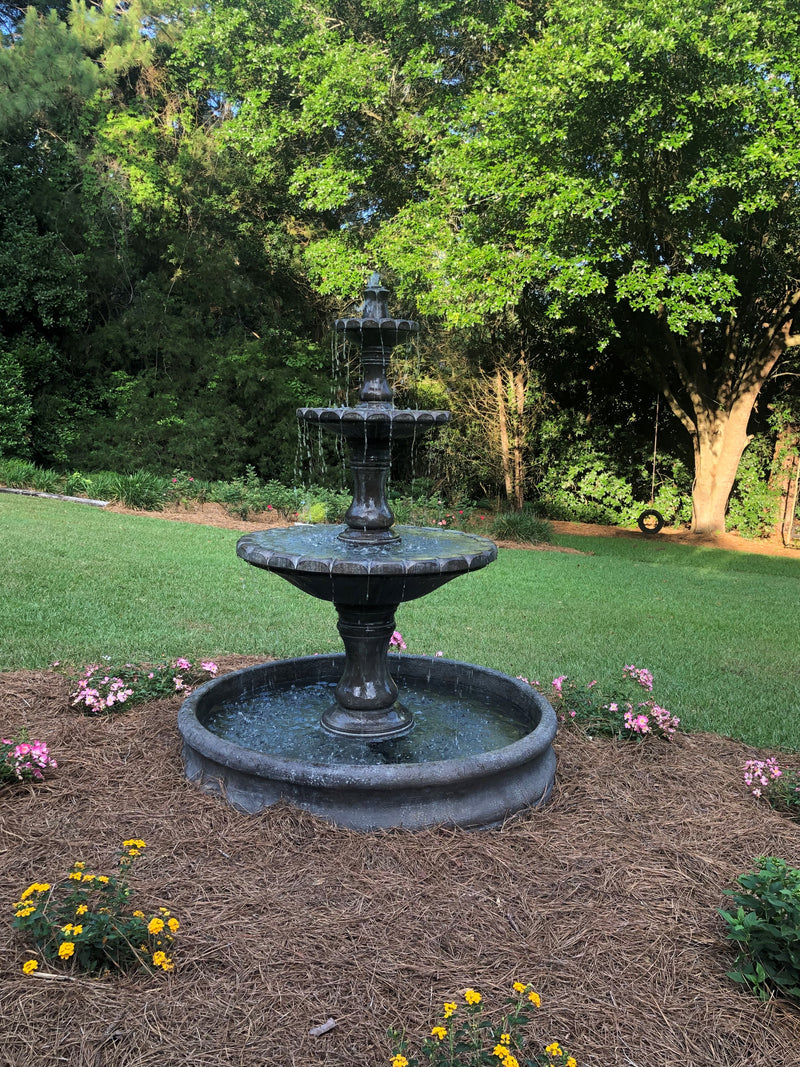 This outdoor fountain is available in 40 Different Finishes. Every finish is hand applied during the production process so color variation is expected. When the finish is applied to the water feature it is designed to replicate the look of naturally aged materials.