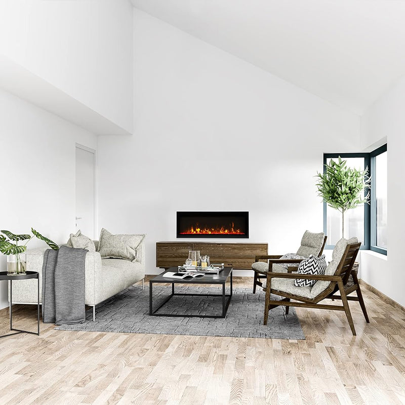 Squeeze in stunning fire, not space, with the Amantii Panorama 30" Xtraslim Smart Indoor/Outdoor Electric Fireplace. This petite powerhouse (19.875"H x 29.125"W x 4"D) packs a punch with its 11.875"H x 25.25"W viewing area that ignites any room. Ultra-thin at just 4" deep, it's perfect for tight spaces while boasting versatility for indoor or outdoor use. Unleash color-changing flames: the FIRE & ICE® system lets you choose from blue, rose, violet, yellow, or orange with a click, all powered by multi-color LED light strips. Standard clear media dances in the flames, and additional options are available to customize your look. Control it all, from flame speed to ambiance, with the WiFi app, multi-function remote, or included black trim. The Panorama 30" Xtraslim isn't just a fireplace, it's a masterclass in maximizing impact in minimal space.
