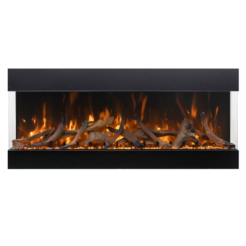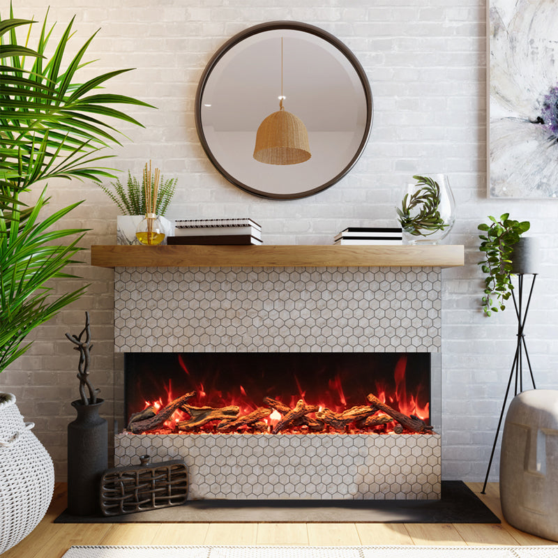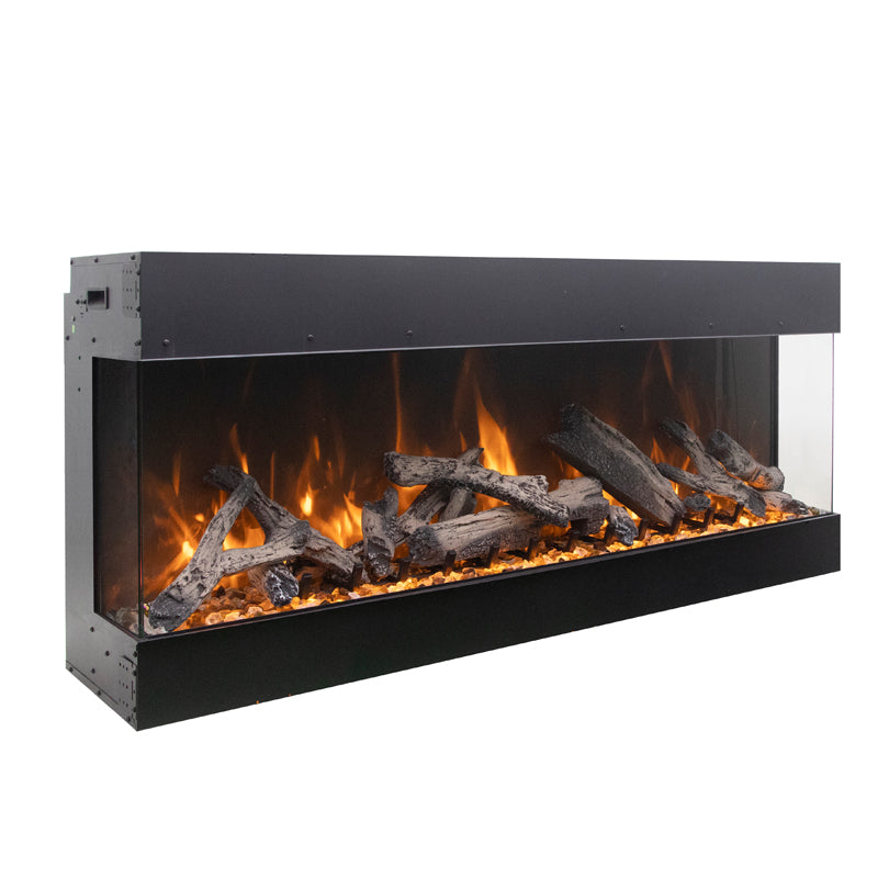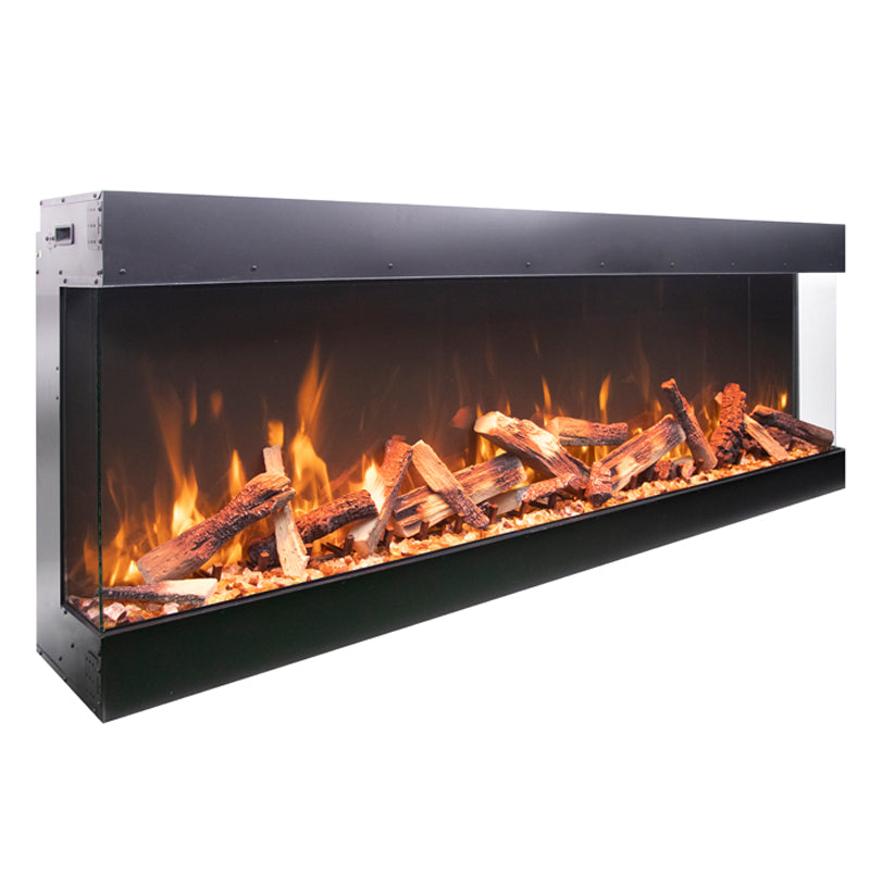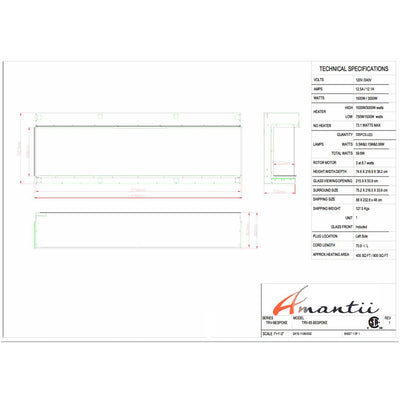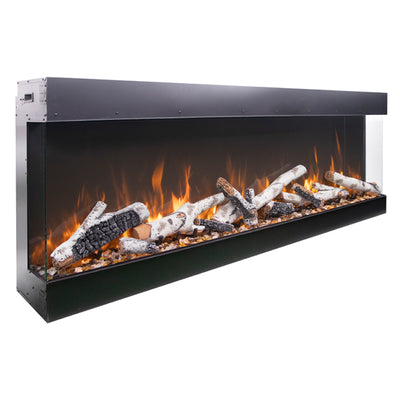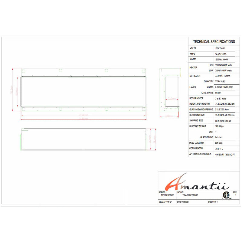Command the elements with the Tru View Bespoke 85" Electric Fireplace (86.125"W x 29.375"H x 15"D), where panoramic fire meets cutting-edge control. This behemoth isn't just a fireplace, it's a statement piece. Imagine lifelike flames dancing across an 85" x 20" canvas, captivating your space with their undeniable grandeur. Customization reigns supreme: recess it, semi-flush mount it, choose one or two open sides, or enclose it entirely. Instant heat (5000 BTU, expandable to 10,000 BTU and 1000 sq. ft. with 220V) warms you up, while crackling fire sounds fill the air, controlled seamlessly through the multi-function panel, intuitive remote, or even your smart device. The WiFi app unlocks a universe of options: set schedules, tailor light effects, adjust temperatures, and craft your perfect ambiance, all from anywhere. But the magic doesn't stop there. Two high-quality speakers deliver rich Bluetooth audio, while the adjustable flame brightness, speed, and ember bed colors let you personalize your experience. Durable, reliable, and backed by a 5-year warranty, the Tru View Bespoke 85" is more than a fireplace, it's a gateway to immersive living. Embrace the future of fire, embrace the Tru View Bespoke.