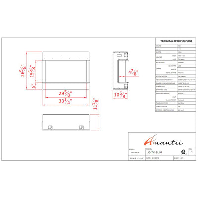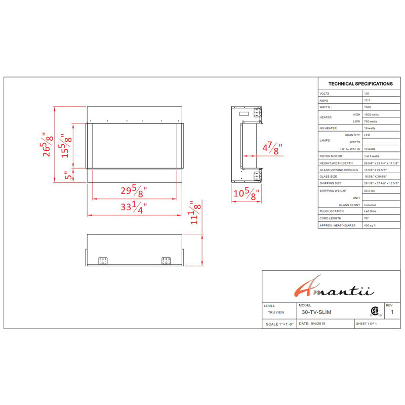 Elevate your space with the sleek and versatile Amantii True View 30" Slim Smart Electric Fireplace. Imagine lifelike flames dancing across a panoramic view (26.625"H x 33.25"W) from this ultra-thin masterpiece (only 4" deep!), creating a captivating scene both indoors and outdoors. Control everything from your smartphone with the WiFi app, or use the convenient touch pad and patented thermostatic remote. Adjust flame speed, choose from three mesmerizing color combinations, and customize the mood with 10 ember lighting options. Warmth surrounds you with 5000 BTU, while the clean, vent-free design ensures uninterrupted visual beauty. Program the timer and thermostat to welcome you home with cozy heat, or let it automatically adjust to the weather. Two flame patterns (standard and traditional) let you match your style, and durable construction promises years of enjoyment. The Amantii True View 30" Slim Smart Electric Fireplace isn't just a fireplace, it's a statement piece that ignites endless possibilities.