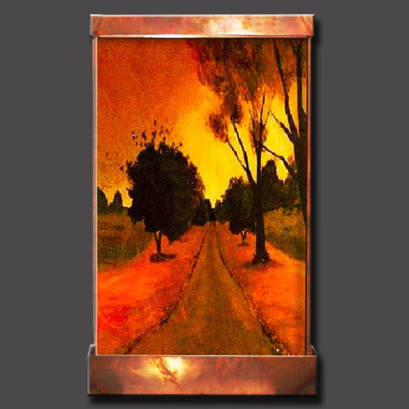 Add a touch of nature to your home or office with Dusk Wall Fountain. It features a warm image of afternoon sun in a country road that gives everyone a peace of mind. The trickling sounds of water flowing down will make a relaxing environment.