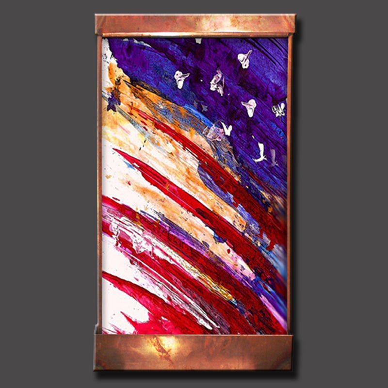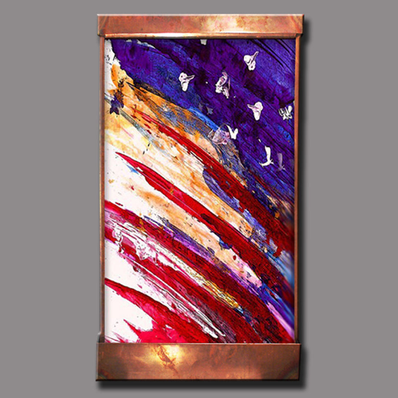 Decorate your wall with a unique and beautiful accent piece of art wall fountain. This elegant fountain symbolized a flag that one should respect. It is hand painted and made of lexan materials that is extremely durable for long lasting use.