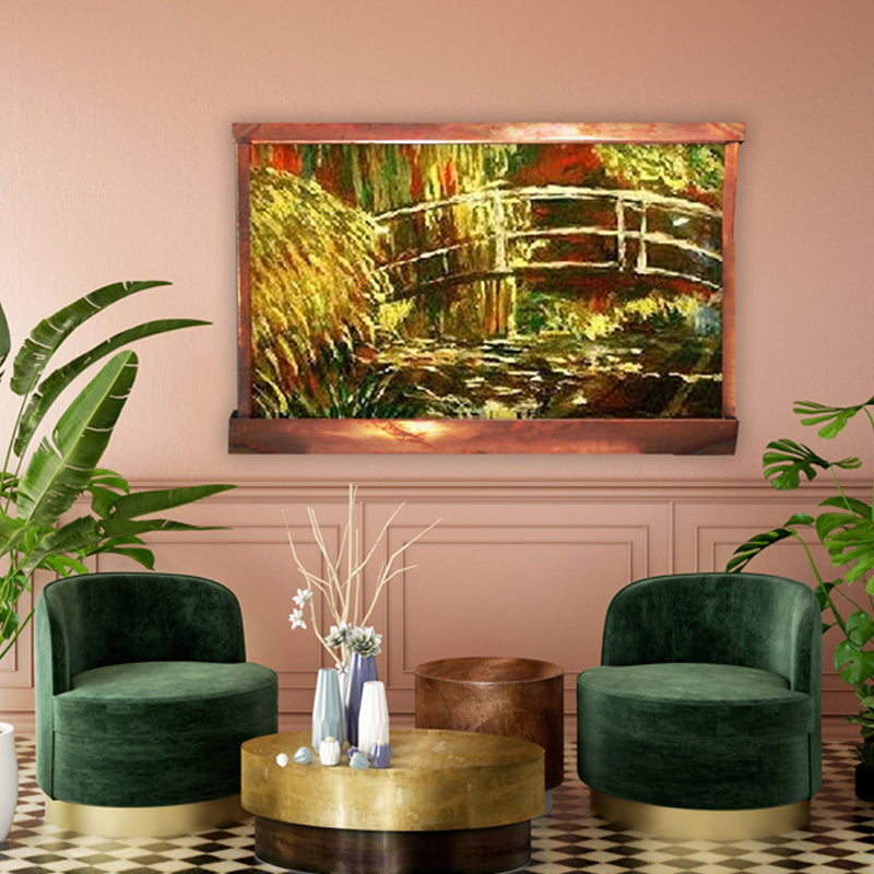 This Japanese Bridge Wall Fountain can be so soothing with the sounds of water flowing in the middle. It has a nicely painted picture which adds beauty and elegance to your home. This fountain helps relieve stress, eliminates unnecessary noise, and moisturizes the air that can be beneficial to your health and your home.