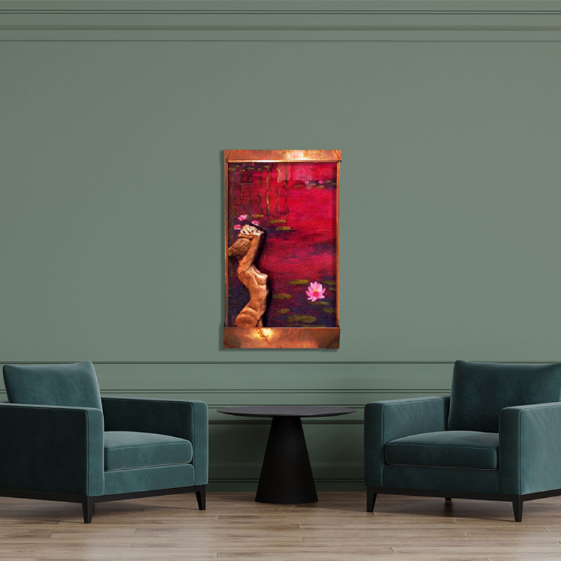 This water feature is a unique work of art that is created by experienced and skilled artists. No two hand painted water features will be exactly alike. Even though your water feature may not be exactly the same as the one pictured on our site, you can be assured that you will receive a beautiful fountain. Once it is running and the relaxing sound of water is added, it will be even more lovely.