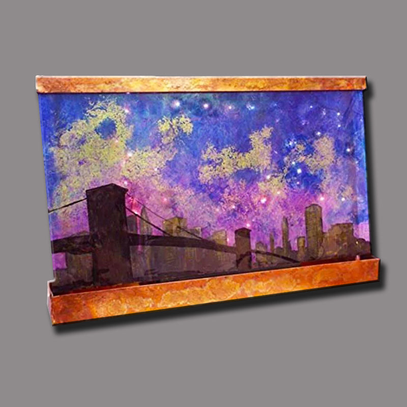 The San Francisco Night Wall Fountain will remind you of those evening vision of San Francisco Night Fountain. The fountain serves as a backdrop for shimmering falling water, framed in pure natural copper. The backdrop is made of a material called Lexan which is durable and also unbreakable.