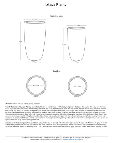 Campania’s glazed and terra cotta planters are hand made from natural clay using traditional artisanal techniques and high-fired at temperatures between 990-1000 degrees centigrade to ensure frost resistance and durability. Glazed planters are coated with natural glazing elements that are baked onto the surface to enhance the products resistance to weathering.