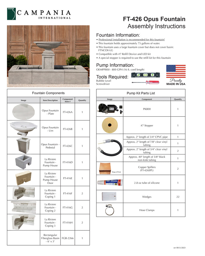 Campania proudly manufactures its cast stone products in the USA using locally sourced materials. All of our cast stone pieces are manufactured using the wet casting technique with a proprietary high density cast stone mix, yielding a PSI strength of approximately 7,500. The mix is comprised primarily of water, sand, stone aggregate and cement. Our cast stone products may qualify for LEED credits as applicable to your project. Cast stone produces a strong and durable product that will weather naturally in an outdoor environment. Simply stated, cast stone is chosen for its beauty and authenticity. Our material is natural, authentic, made in the USA, and 100% recyclable.