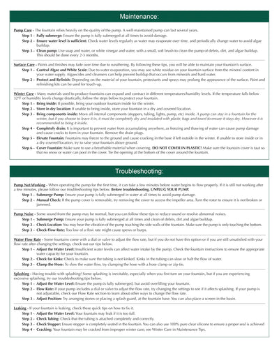 Maintaining your fountain is not difficult. You just need to have the right information to keep your fountain clean and running properly.