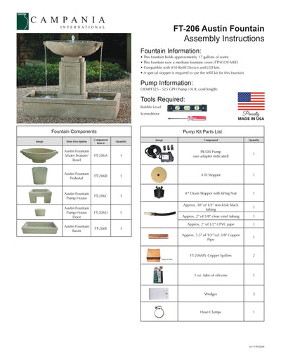 To keep a constant water level in your fountain, you can add the auto refill system. It comes with a float valve, concrete base, custom stopper, clear tubing, and a pressure relief garden hose or spigot connection. The device is connected to a garden hose or spigot, and the water is turned on and off by the valve in the unit, keeping your fountain filled effortlessly.