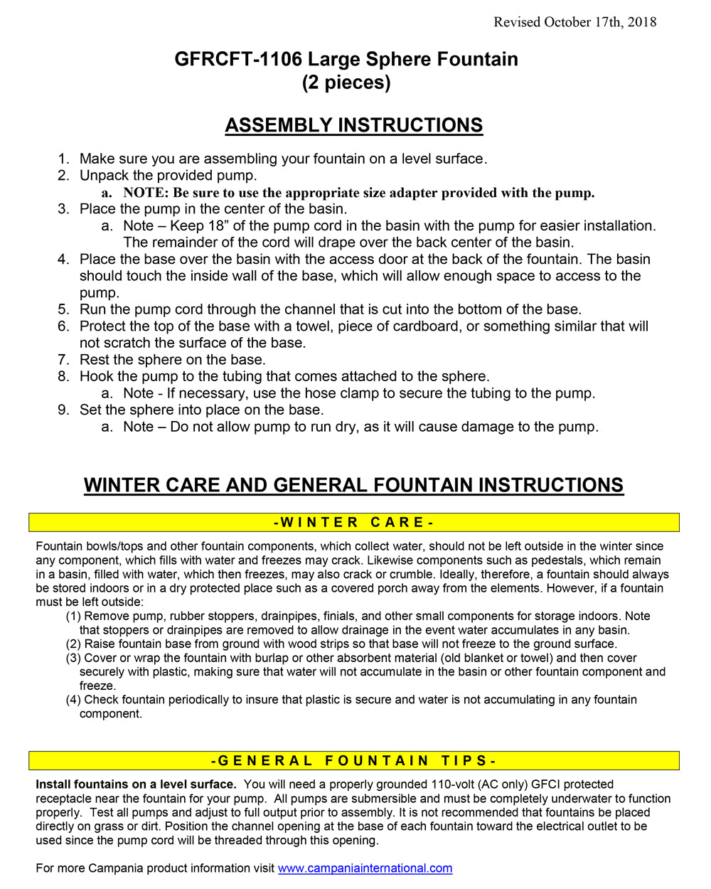 - All hardware and tubing required to properly assemble the fountain