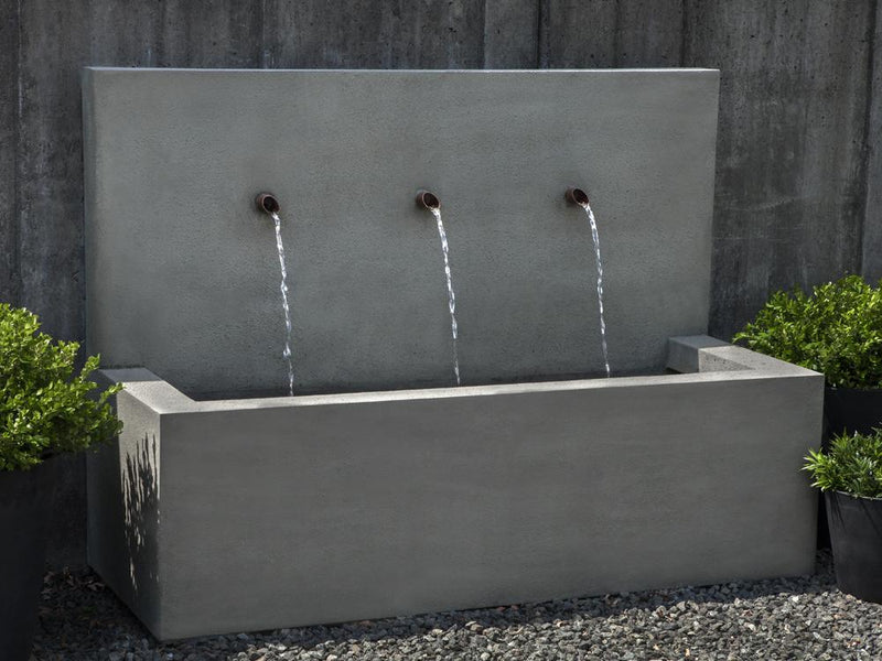 Add a contemporary touch to your outdoor space with the Long Beach Wall Fountain. This modern work of art features a large rectangular backplate with three spouts and a sleek rectangular basin. With easy installation, you can enjoy this amazing garden fountain right away in your favorite outdoor spot, and truly turn it into a safe haven!