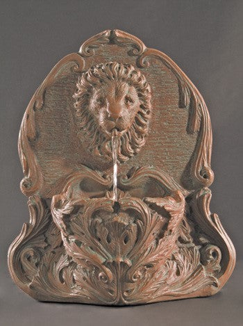 The cast stone Lion Wall Fountain is a handsome wall fountain, ideal for a garden or yard. The water gently pours from the lions mouth down into the reservoir below creating a calm trickling sound. Hand-made in the United States by skilled artisans and made of cast stone, this fountain is durable and long lasting.