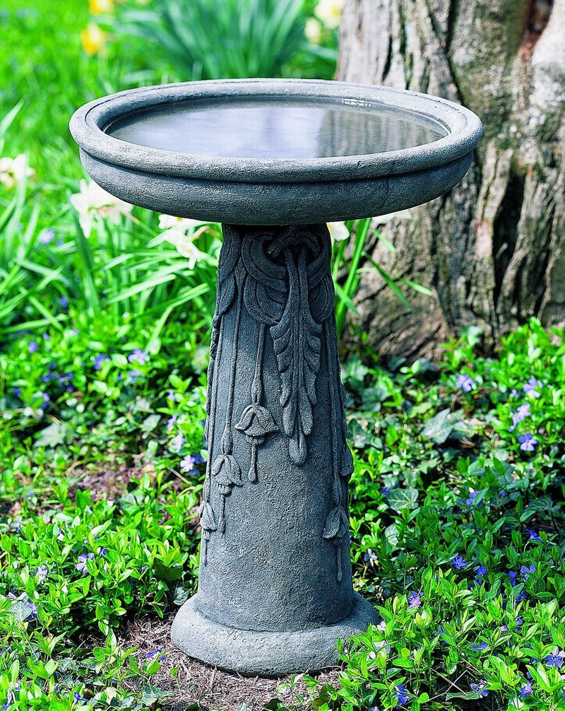 Cleaning Instructions: Campania’s cast stone birdbaths can be cleaned with diluted vinegar and water or with any commercially available mild detergent. Use a soft cloth, sponge, or brush. Do not pressure wash, apply corrosive cleaners or clean with anything abrasive. Note that it may take several cycles of wiping and drying before the birdbath is completely clean. Cast stone contains salts that may effloresce over time. You will notice a fine white powdery coating on the surface of the cast stone if the efflorescence is present in your product. If you wish to remove the salt deposits, Campania can recommend an appropriate an efflorescence cleaner.