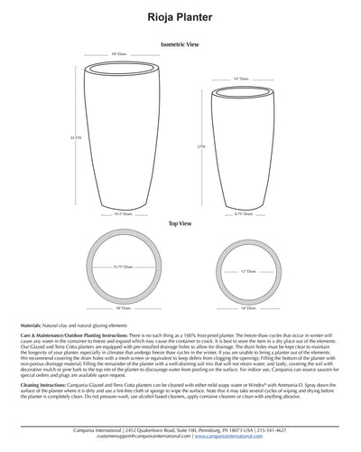 Campania’s glazed and terra cotta planters are hand made from natural clay using traditional artisanal techniques and high-fired at temperatures between 990-1000 degrees centigrade to ensure frost resistance and durability. Glazed planters are coated with natural glazing elements that are baked onto the surface to enhance the products resistance to weathering.
