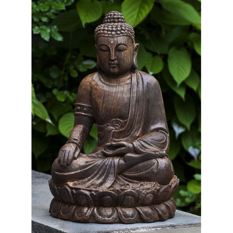 This Buddha statue is amazing. It is very well made with beautiful detail and is heavy. My husband had to lift it in place because it was too heavy for me to lift. It feels and looks like stone. I expect it will hold up well outside in my garden. I placed it on a flat stone to keep it off the ground. It was encased in foam in the box so there was no damage at all. The statue is made in PA.