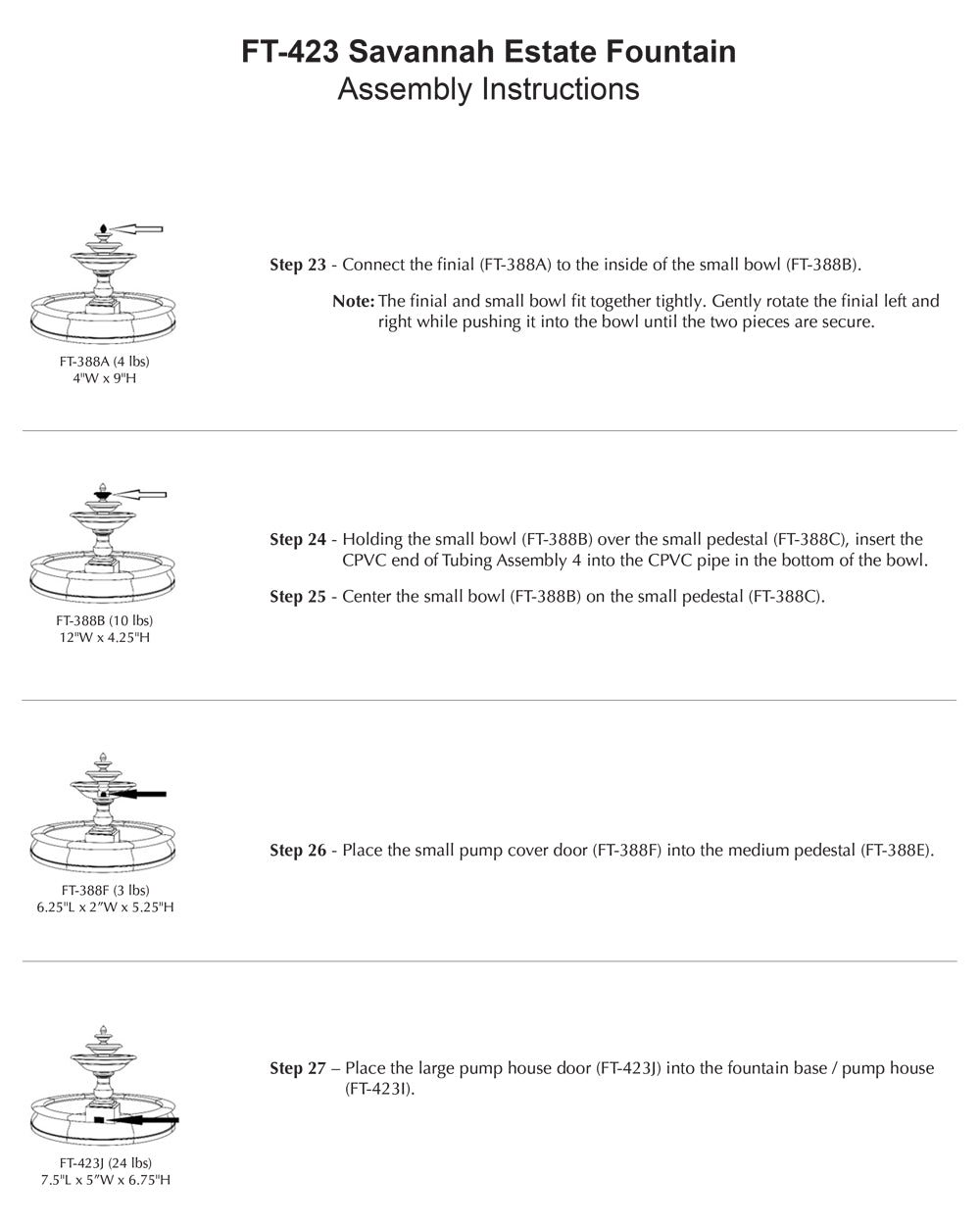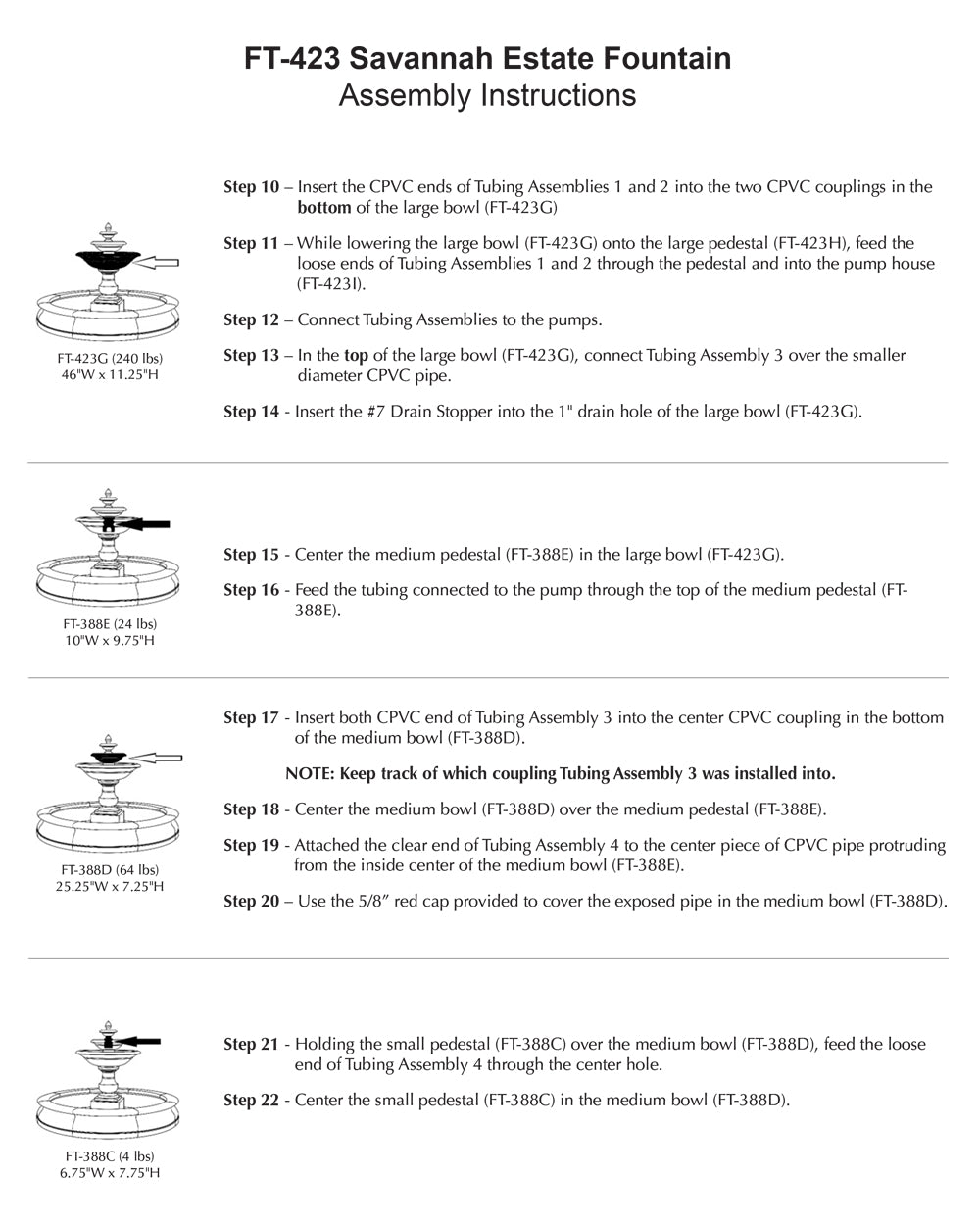 - All hardware and tubing required to properly assemble the fountain