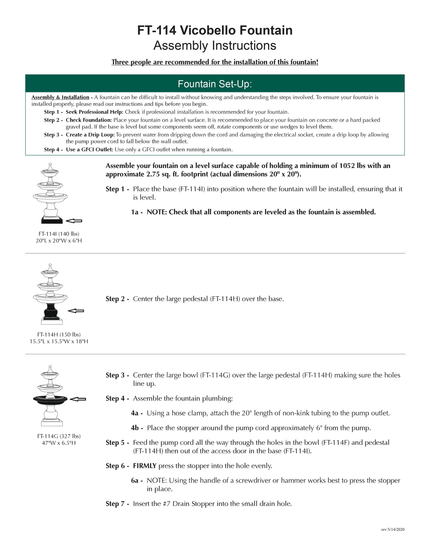 • All hardware and tubing required to properly assemble the fountain
