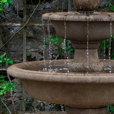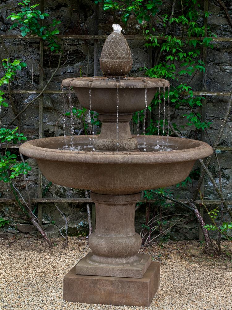 Give your outdoor setting a classic touch with the Wiltshire Fountain. This classic-looking piece features two tiers, a pineapple finial, and a sturdy pedestal atop a square base.
