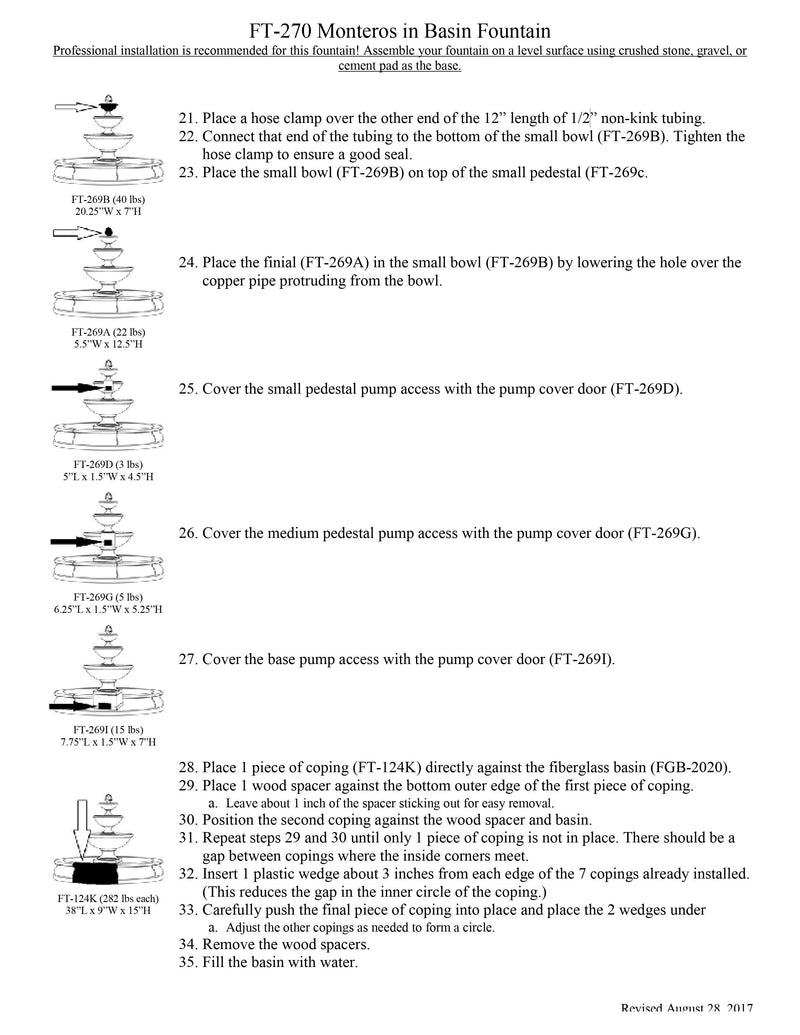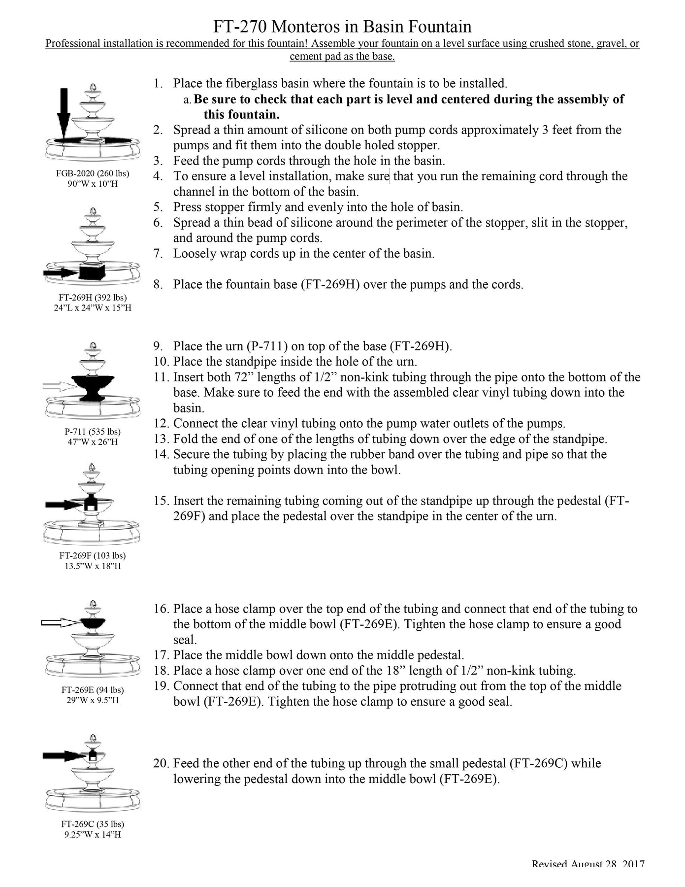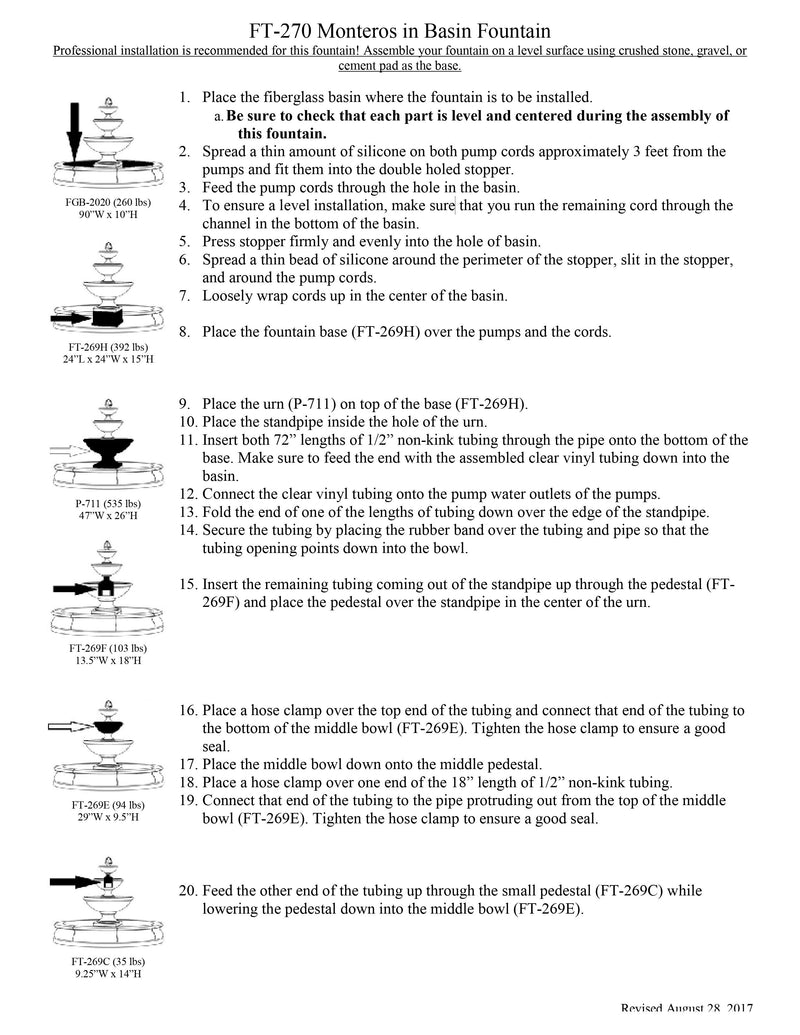 • Drainage Info: One drainage hole in the side wall of the fiberglass basin and one off-center in the large and medium bowls of the fountain