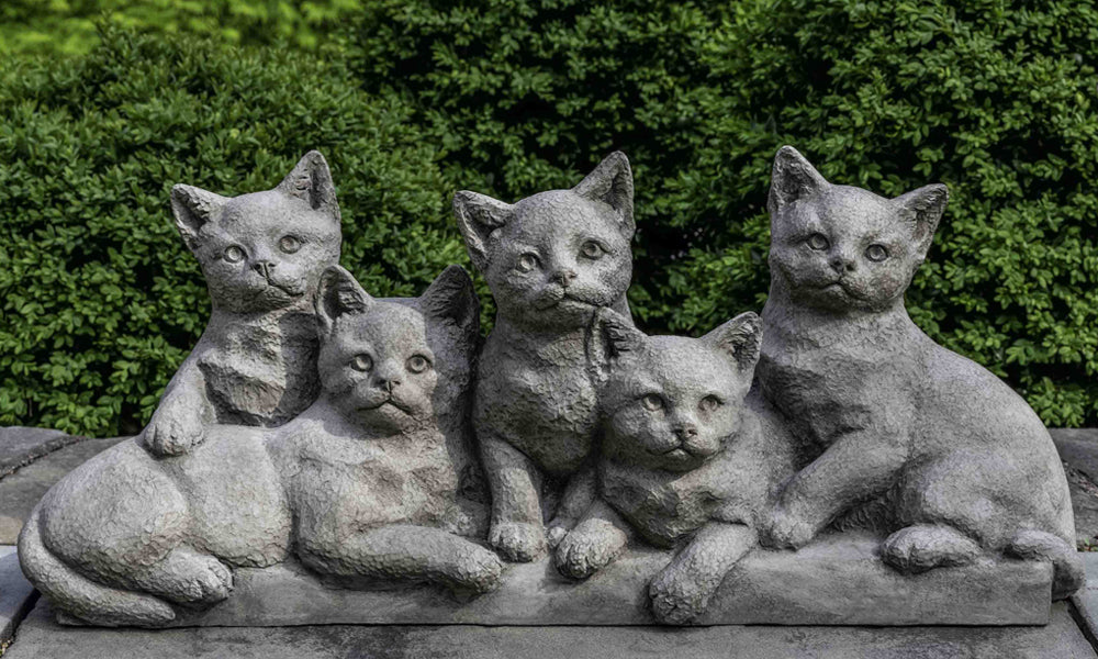 Cleaning Instructions: Campania’s cast stone statuary can be cleaned with diluted vinegar and water or with any commercially available mild detergent. Use a soft cloth, sponge, or brush. Do not pressure wash, apply corrosive cleaners or clean with anything abrasive. Note that it may take several cycles of wiping and drying before the statuary is completely clean. Cast stone contains salts that may effloresce over time. You will notice a fine white powdery coating on the surface of the cast stone if the efflorescence is present in your product.