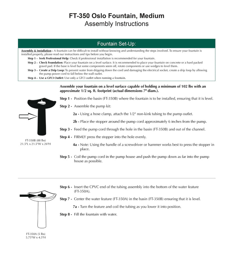 *Due to size and shape, some accessories may not be compatible with each fountain. For questions regarding fountain accessories, please contact customer service.