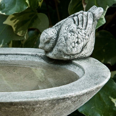 Cleaning Instructions: Campania’s cast stone birdbaths can be cleaned with diluted vinegar and water or with any commercially available mild detergent. Use a soft cloth, sponge, or brush. Do not pressure wash, apply corrosive cleaners or clean with anything abrasive. Note that it may take several cycles of wiping and drying before the birdbath is completely clean. Cast stone contains salts that may effloresce over time. You will notice a fine white powdery coating on the surface of the cast stone if the efflorescence is present in your product. If you wish to remove the salt deposits, Campania can recommend an appropriate an efflorescence cleaner.