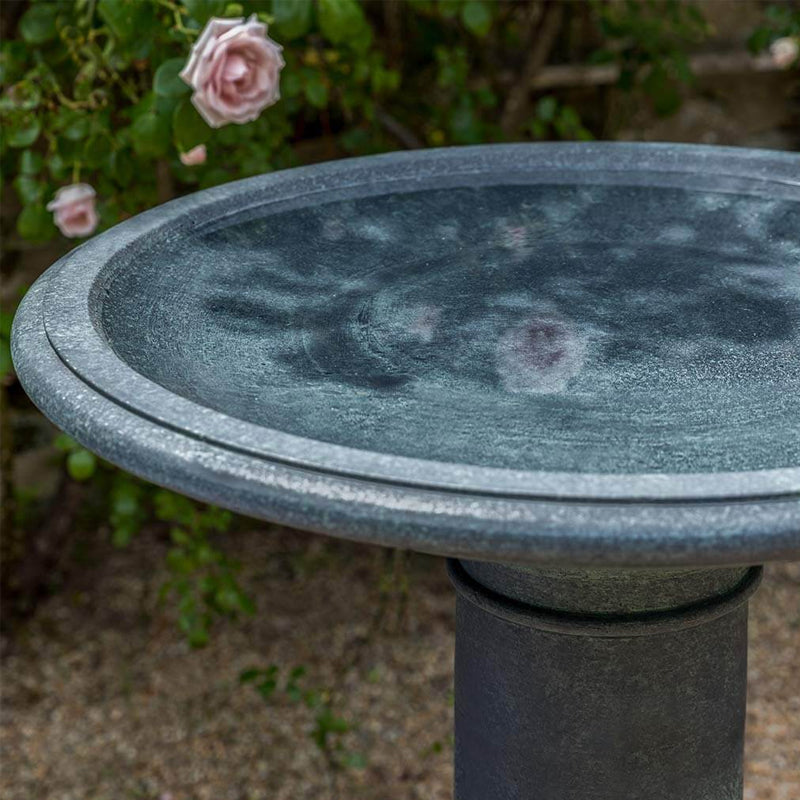 Cleaning Instructions: Campania’s cast stone birdbaths can be cleaned with diluted vinegar and water or with any commercially available mild detergent. Use a soft cloth, sponge, or brush. Do not pressure wash, apply corrosive cleaners or clean with anything abrasive. Note that it may take several cycles of wiping and drying before the birdbath is completely clean. Cast stone contains salts that may effloresce over time. You will notice a fine white powdery coating on the surface of the cast stone if the efflorescence is present in your product. If you wish to remove the salt deposits, Campania can recommend an appropriate an efflorescence cleaner.