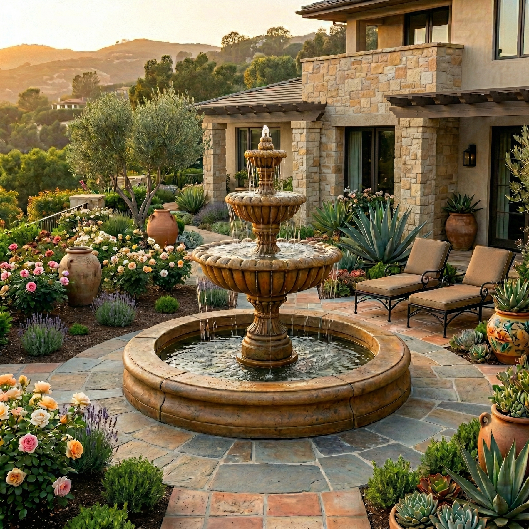 Marsala 3-Tier Fountain with Fiore Pond