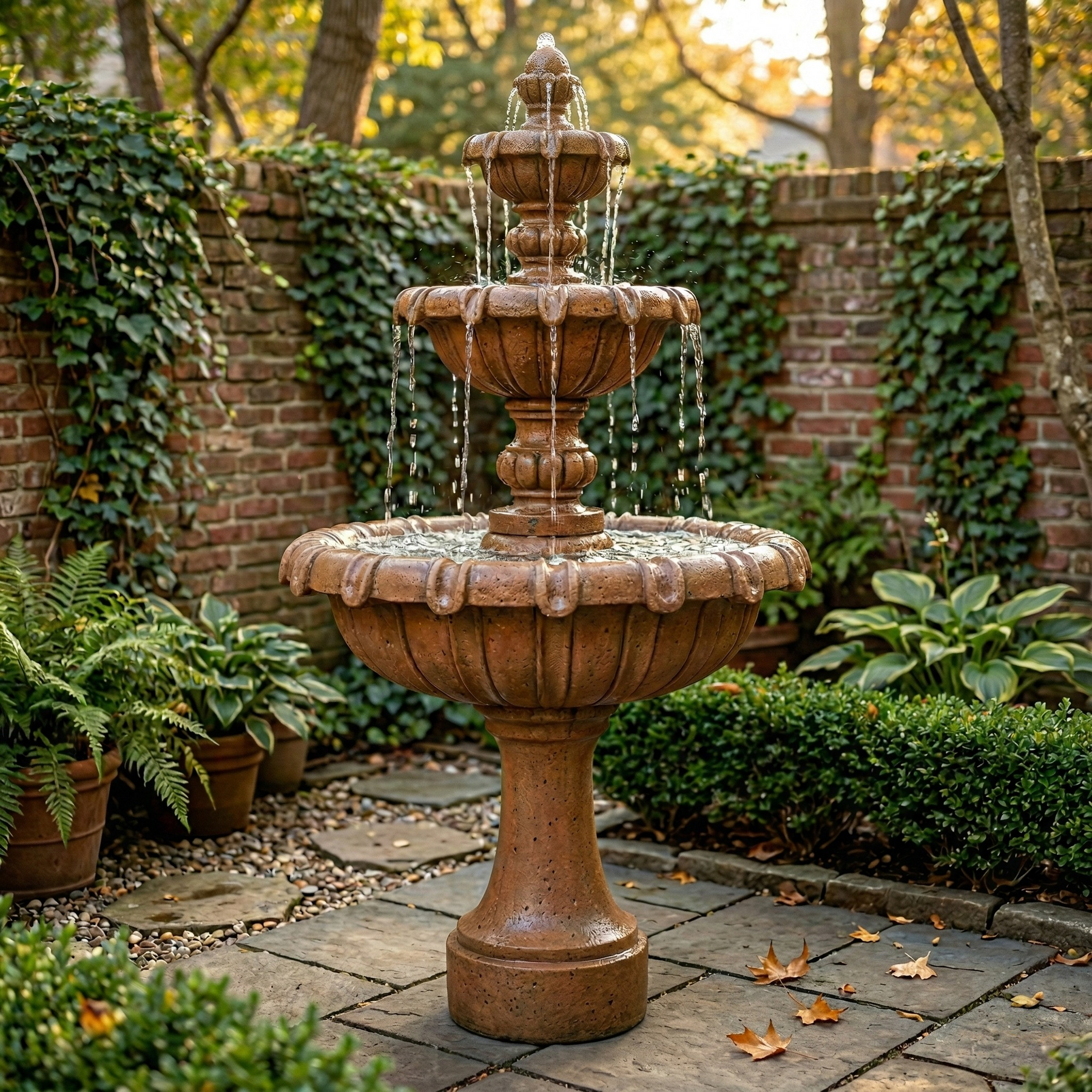 The Chateau Three Tier Outdoor Water Fountain is an amazing addition to any garden setting. Elegantly crafted, stands six feet tall, and is very durable.