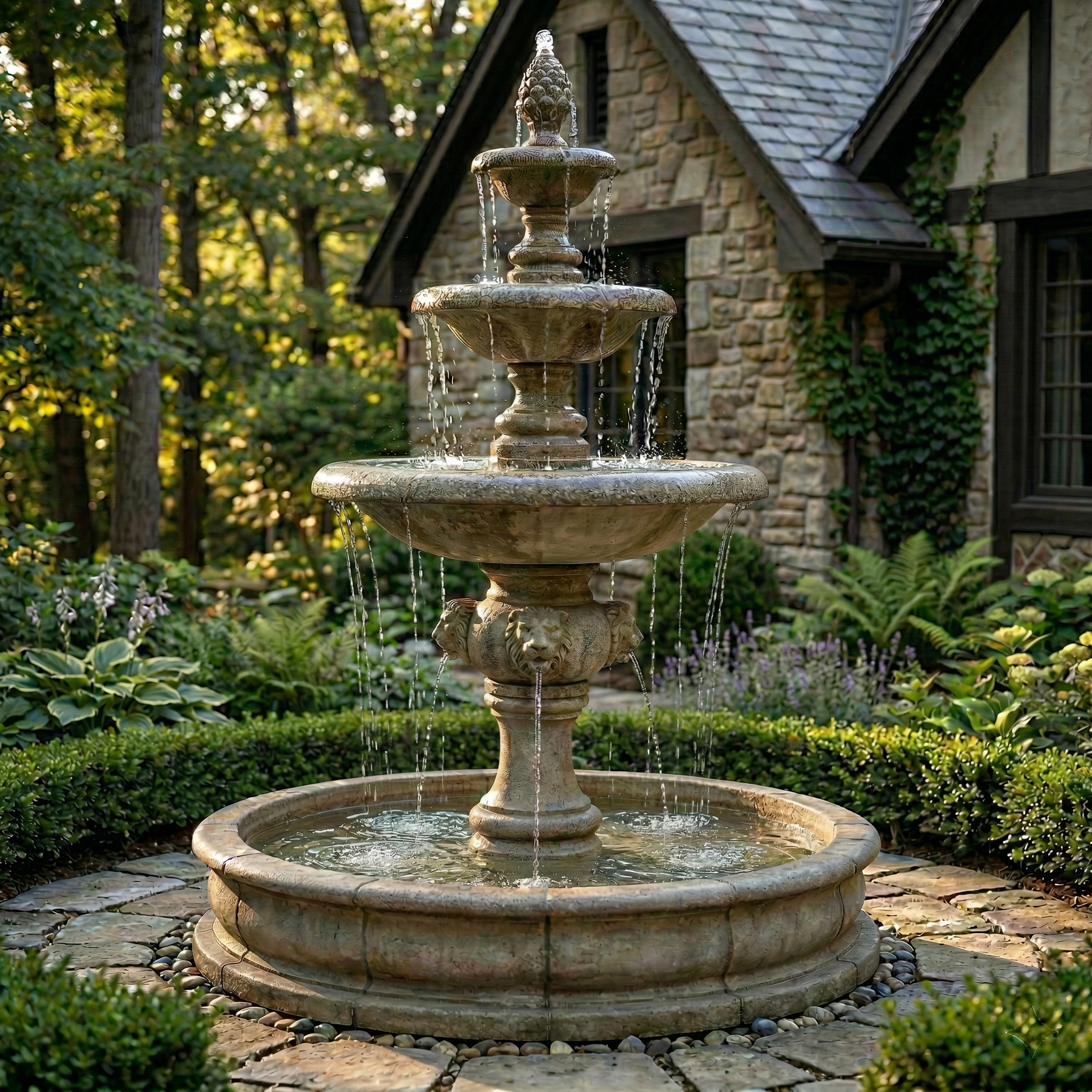 Quattro Lion Three Tier Pond Fountain