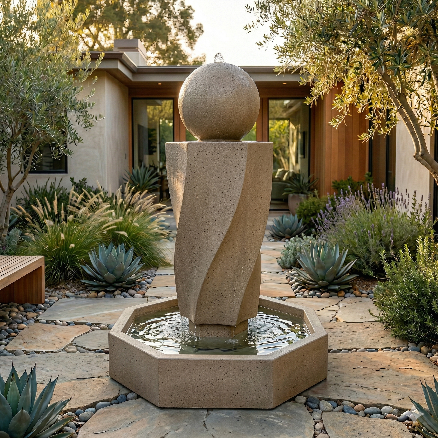 The gentle flow of water on the Vortex with Ball Outdoor Fountain creates a relaxing atmosphere while transforming the space into a beautiful one. Its unique design embodies the spirit and power of one's creativity.