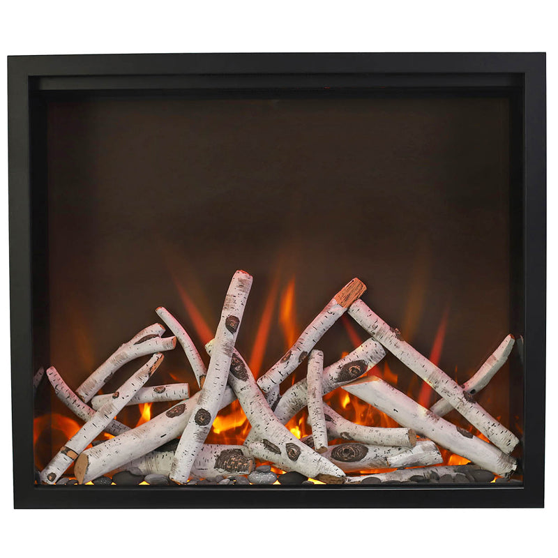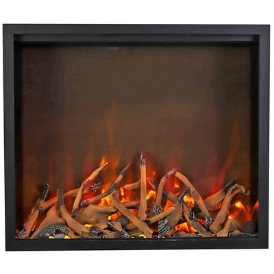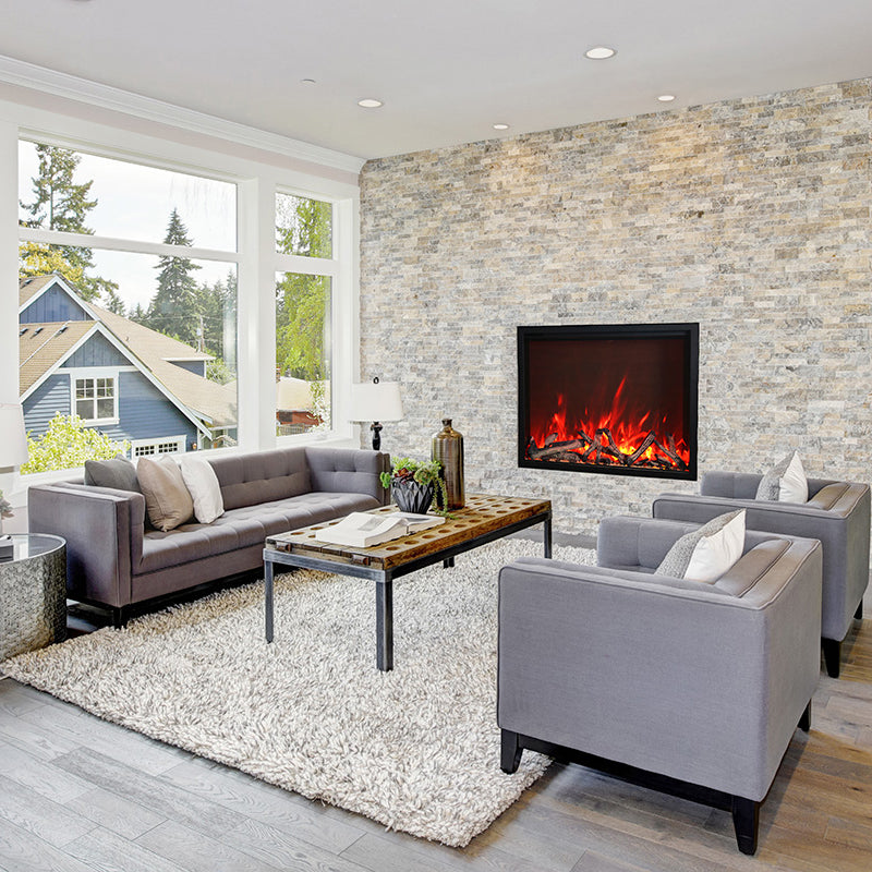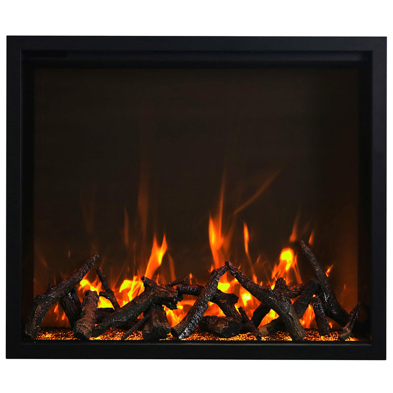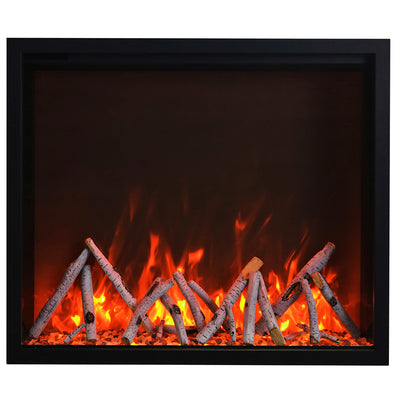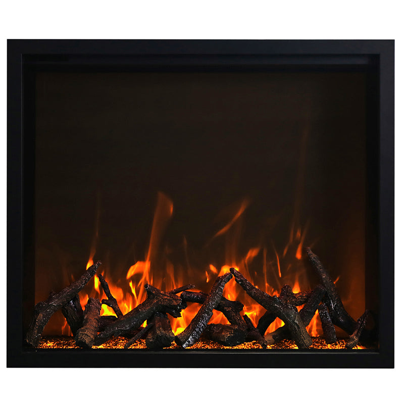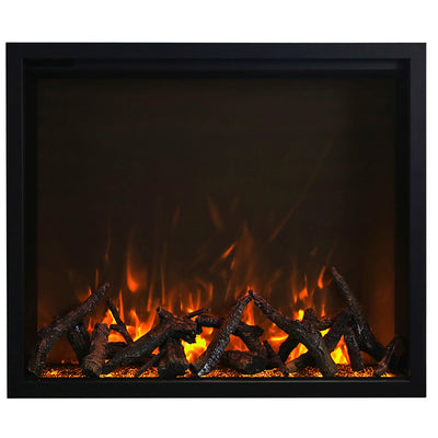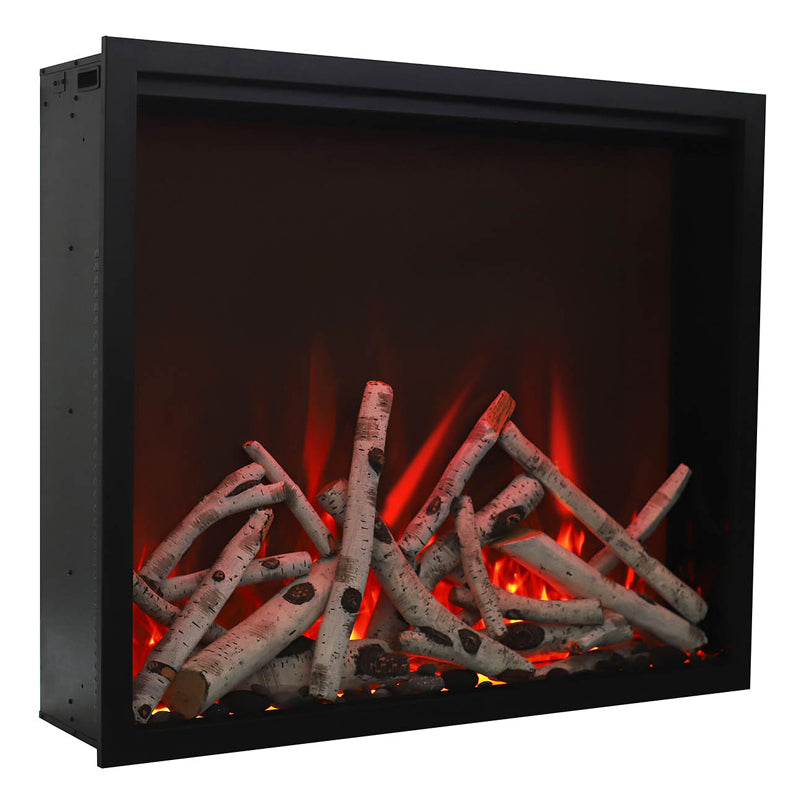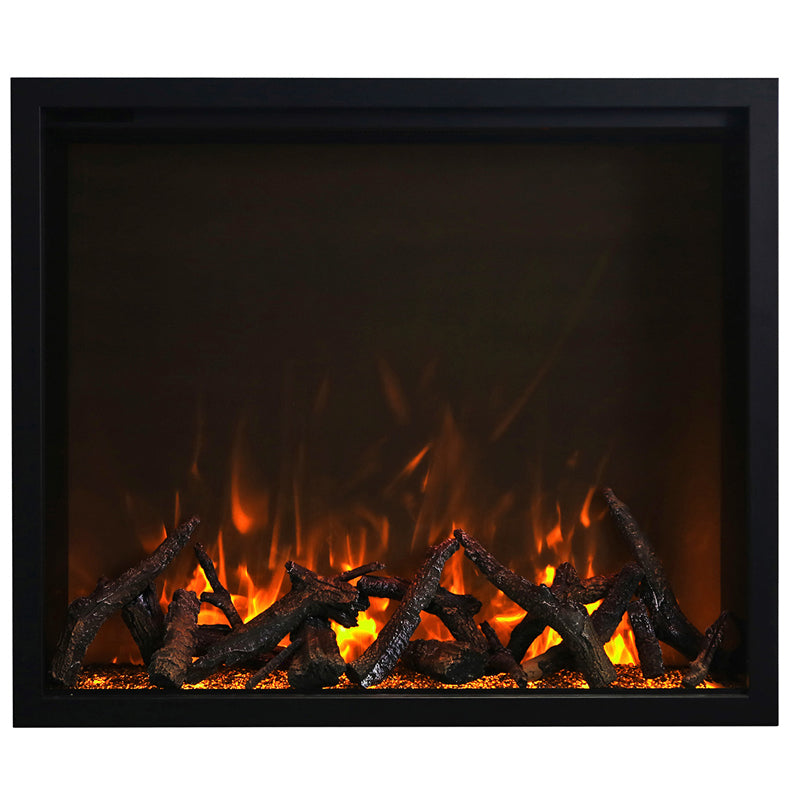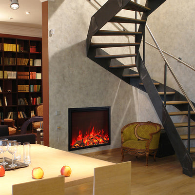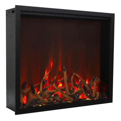 Unleash a captivating spectacle of fire with the Amantii 48" TRD Smart Electric Fireplace, a modern masterpiece designed to elevate any space. This sleek 41 1/8"H x 47 1/4"W beauty seamlessly blends into your décor, offering the choice of recessed or mounted installation in any 2x4 wall. Mesmerize your senses with unsurpassed, realistic flames that dance through the expansive 38 5/8"H x 45 3/8"W viewing area, captivating you with their beauty year-round, with or without heat. Control your fire with ease: WiFi app lets you reign from afar, while the included remote control offers comfort from your favorite spot. Choose from two heat settings or enjoy the flames ambiance alone. Personalize your masterpiece: 11 multi-colored uplights accentuate the media (clear glass diamonds and black surround included), while 5 flame settings in each of yellow, orange, and red let you tailor the mood. Smart Heater Control maintains your ideal temperature, making this fireplace perfect for any commercial or residential space. Ignite endless possibilities with the Amantii 48" TRD Smart Electric Fireplace – where form meets function and your space becomes a captivating haven of warmth and personalized ambiance.