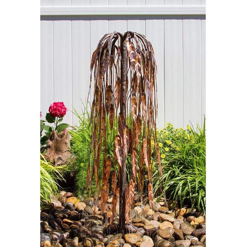 Handcrafted in the serene, deep woodlands of England, the 37" Copper Weeping Willow Garden Fountain is a masterpiece of artisanal skill, a synthesis of metal and water. Every element, down to the intricate leaves, is hand-cut and hand-made, guaranteeing a level of individuality and distinction that is impossible to replicate in mass production. To ensure a long life and prevent maintenance issues, a stainless steel mesh pump bag is included to protect against clogging. Polished pebbles, which are not included, are available for purchase. We recommend a quantity of 200 lbs. for best results.