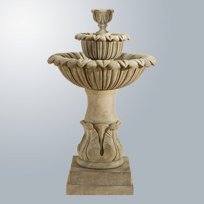 This outdoor fountain is available in 17 Different Finishes. Every finish is hand applied during the production process so color variation is expected. When the finish is applied to the water feature it is designed to replicate the look of naturally aged materials.
