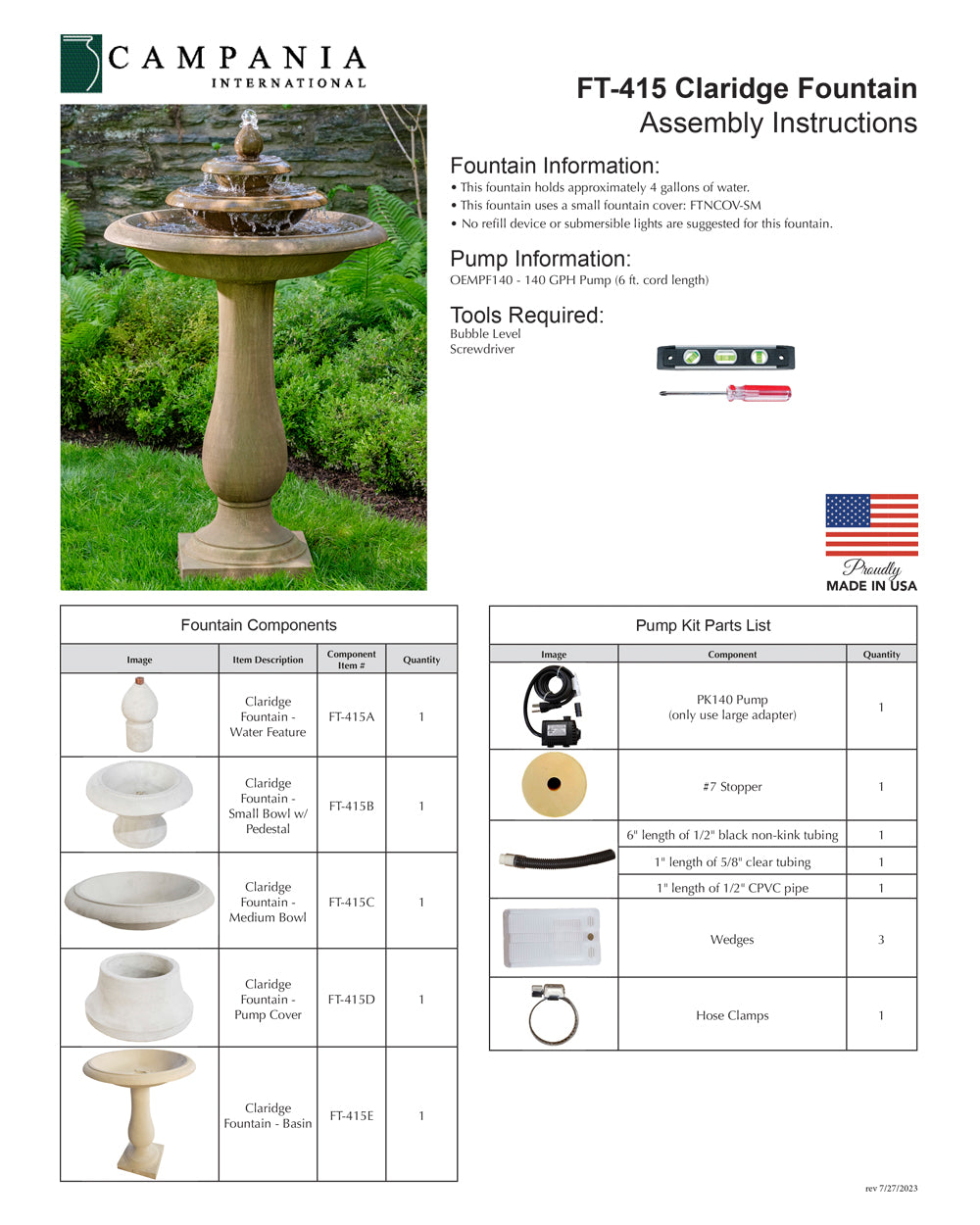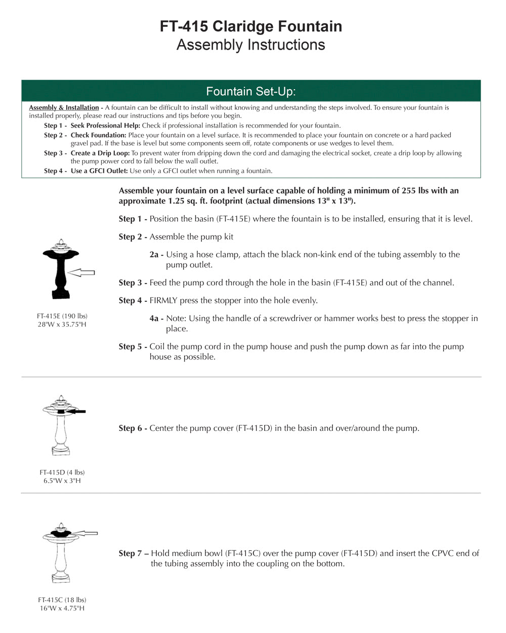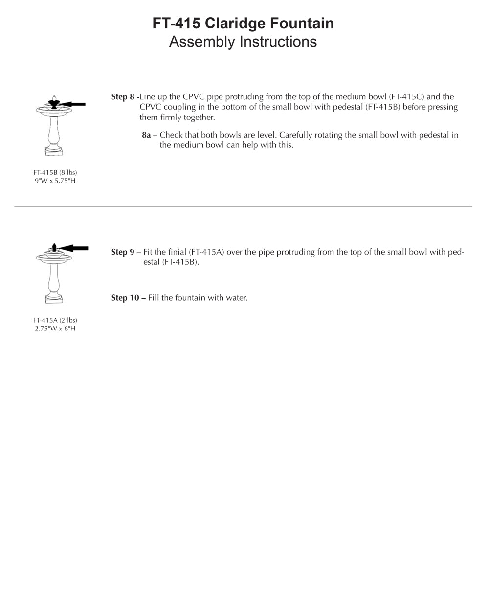 *Due to size and shape, some accessories may not be compatible with each fountain. For questions regarding fountain accessories, please contact customer service.