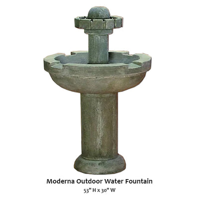 Add a modern touch to your garden setting with the Moderna Outdoor Water Fountain. Featuring a half-sphere finial that spurts water into the receiving bowl where water flows through scupper-like channels.