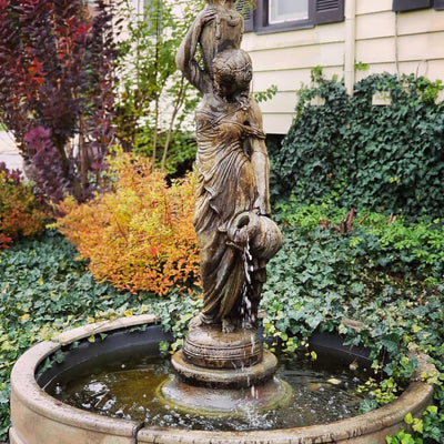 The Rebecca At Well Outdoor Fountain in Grando Pool is a fascinating piece that will add beauty and serenity to your outdoor space. It features Rebecca standing in the middle of a pool, gently pouring water into it. This water feature is available in 25 finishes.